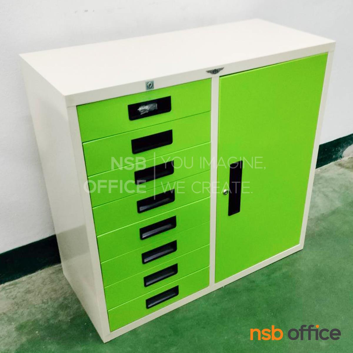 E07A130: ตู้เก็บเอกสารบนบานเลื่อนกระจกล่าง 1 บานเปิด 8 ลิ้นชัก รุ่น Waldo (วัลโด้)