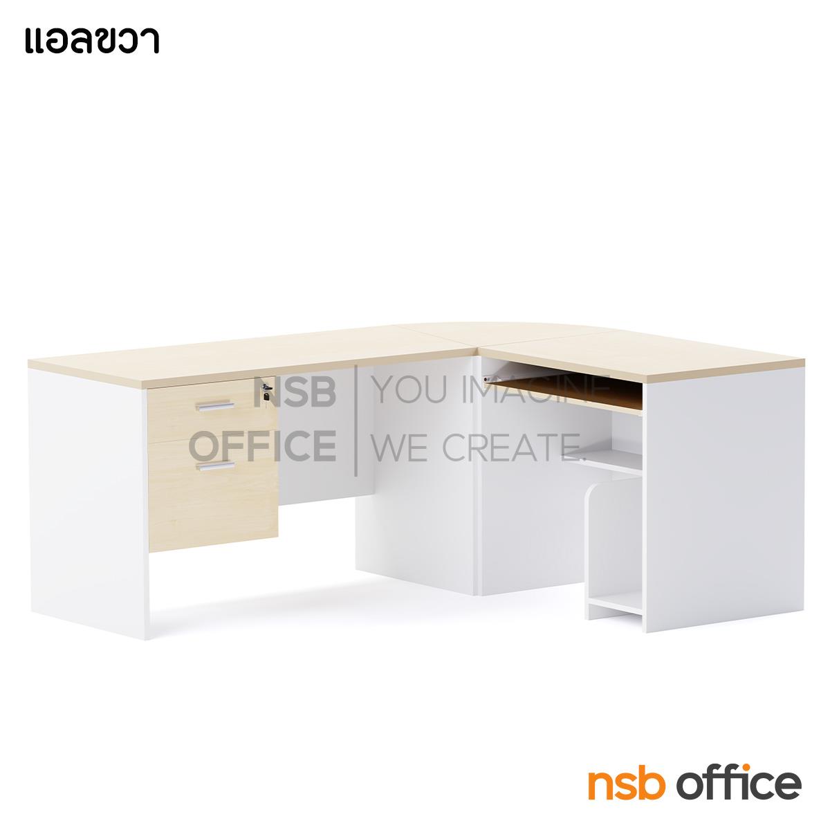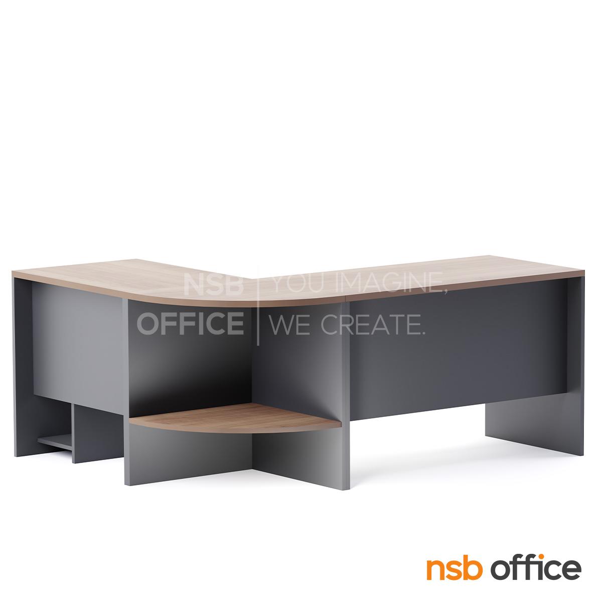 A16A121: โต๊ะผู้บริหารตัวแอลมุมโค้ง รุ่น Cayden (เคย์เดน) ขนาด 180W*140W2*60D cm.