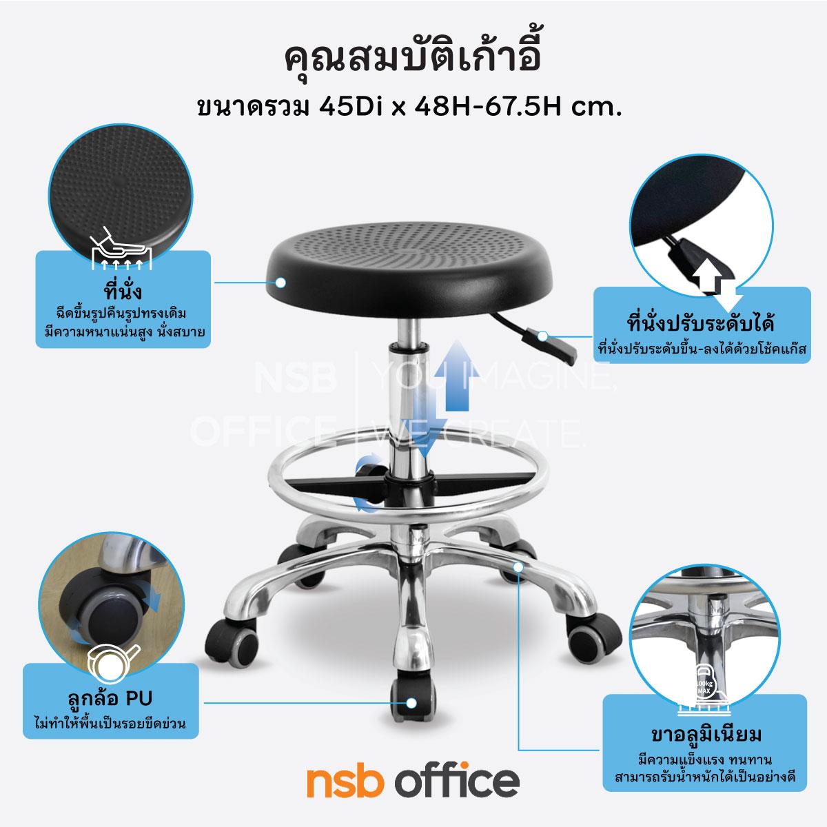 : เก้าอี้บาร์สตูลที่นั่งกลม รุ่น Fergus (เฟอร์กัส) จุกแป้น (ESD ป้องกันไฟฟ้าสถิต) ขาอลูมิเนียม