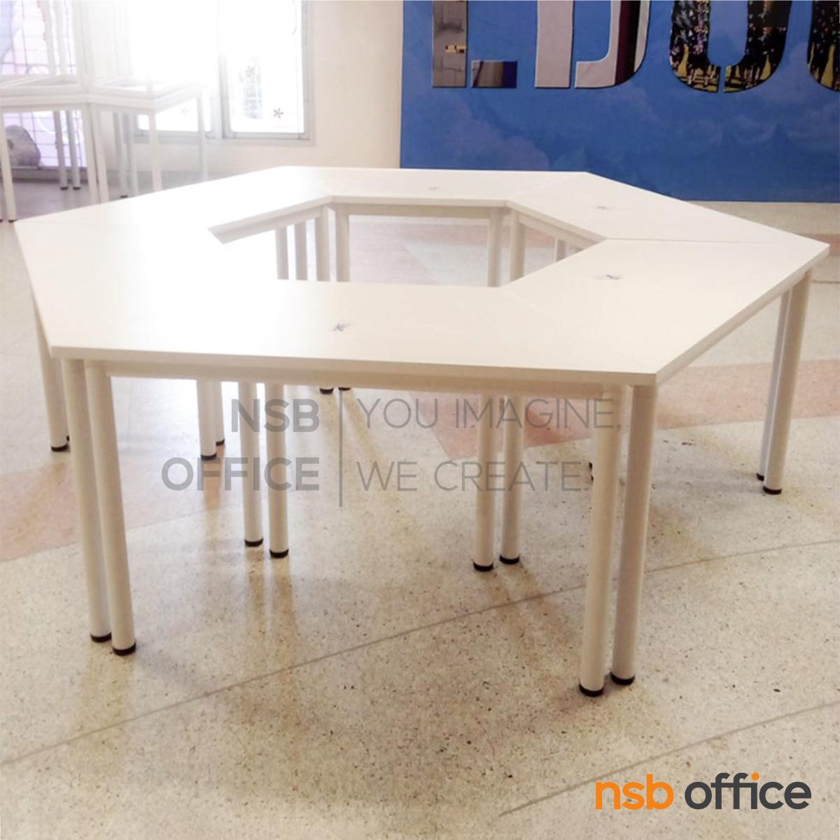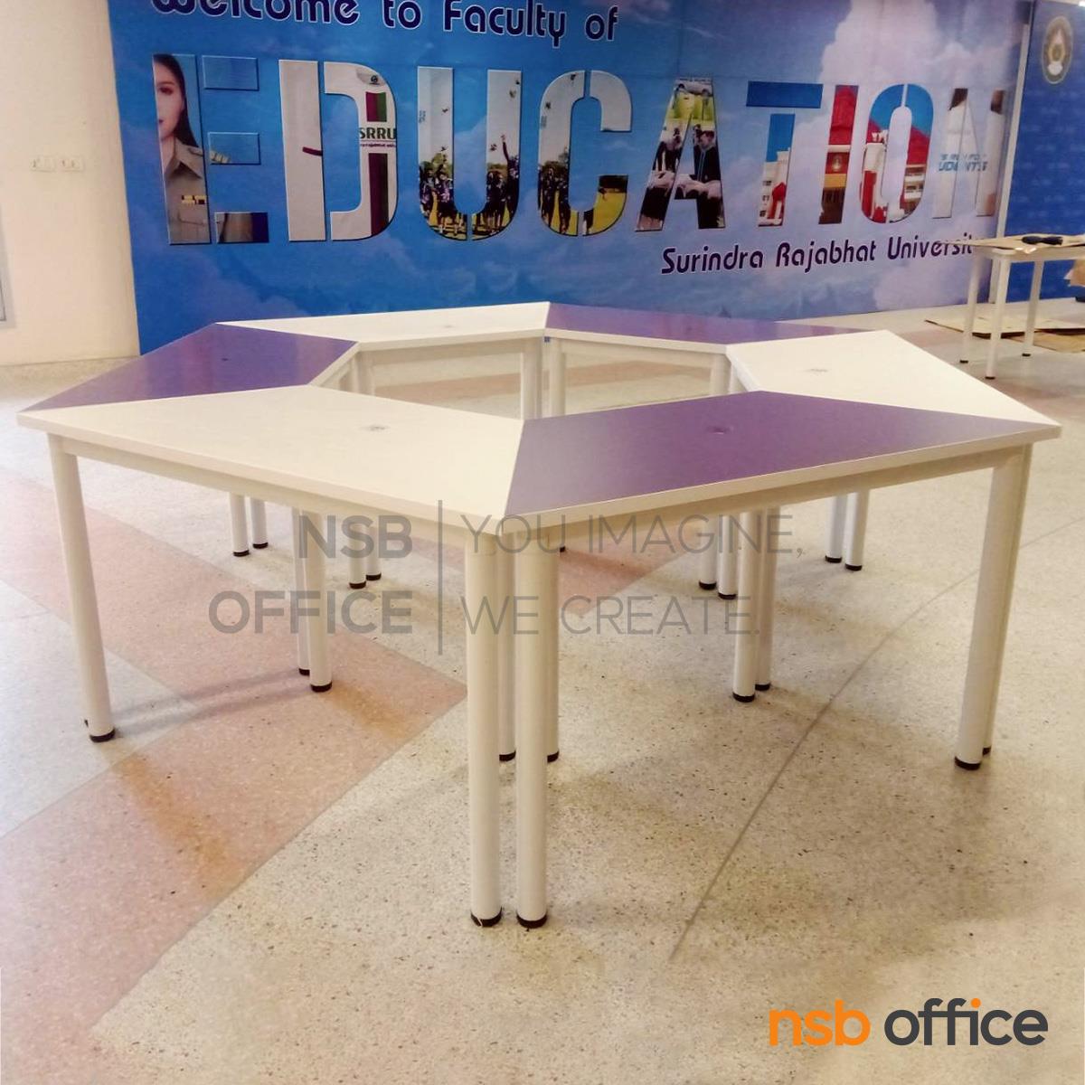 H02A005: โต๊ะเรียนกิจกรรมทรงคางหมู รุ่น Hexa 105, 120, 140W cm ไม่มีล้อเลื่อน (สำหรับกลุ่ม 6 คน)