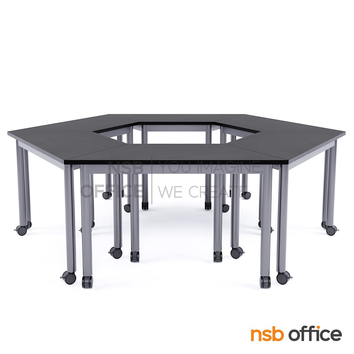 H02A006: โต๊ะเรียนกิจกรรมทรงคางหมู รุ่น Hexa 105, 120, 140W cm ล้อเลื่อน (สำหรับกลุ่ม 6 คน)