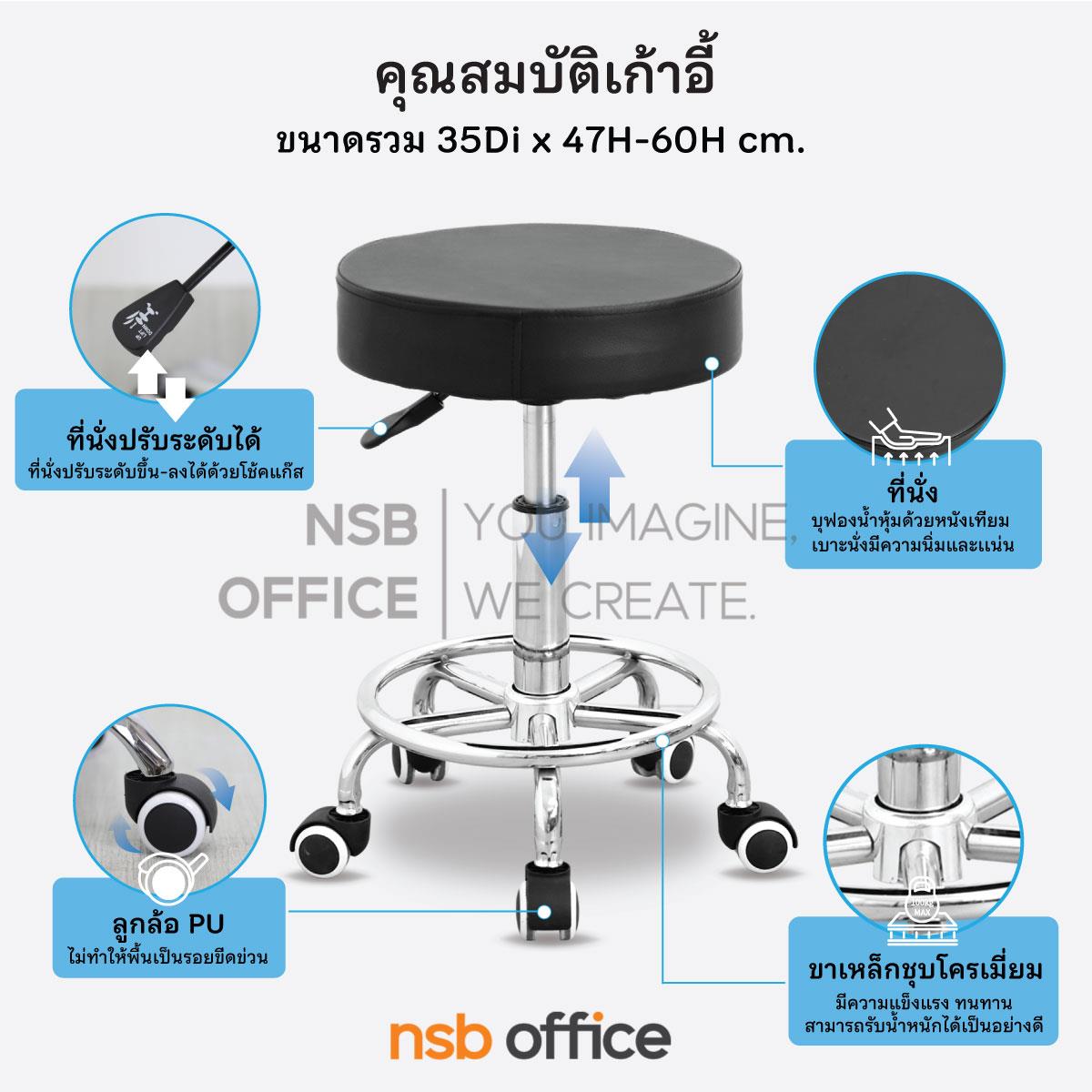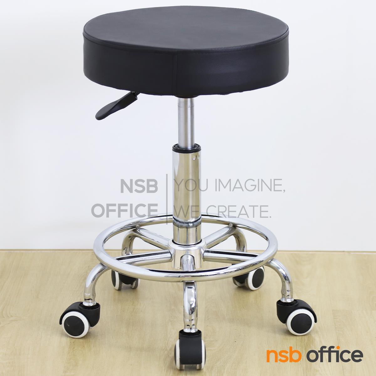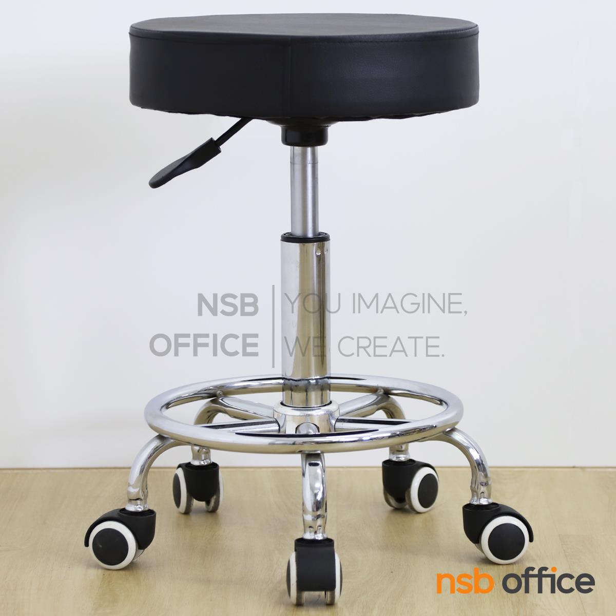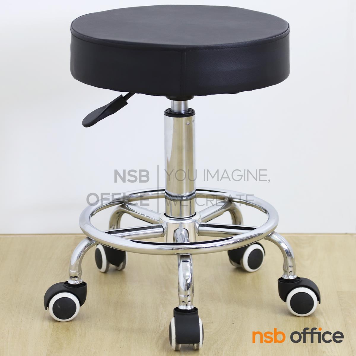 : เก้าอี้บาร์สตูลที่นั่งกลม รุ่น Dashiell (แดเชียล) ล้อเลื่อน โช๊คแก๊ส ขาเหล็กชุบโครเมี่ยม