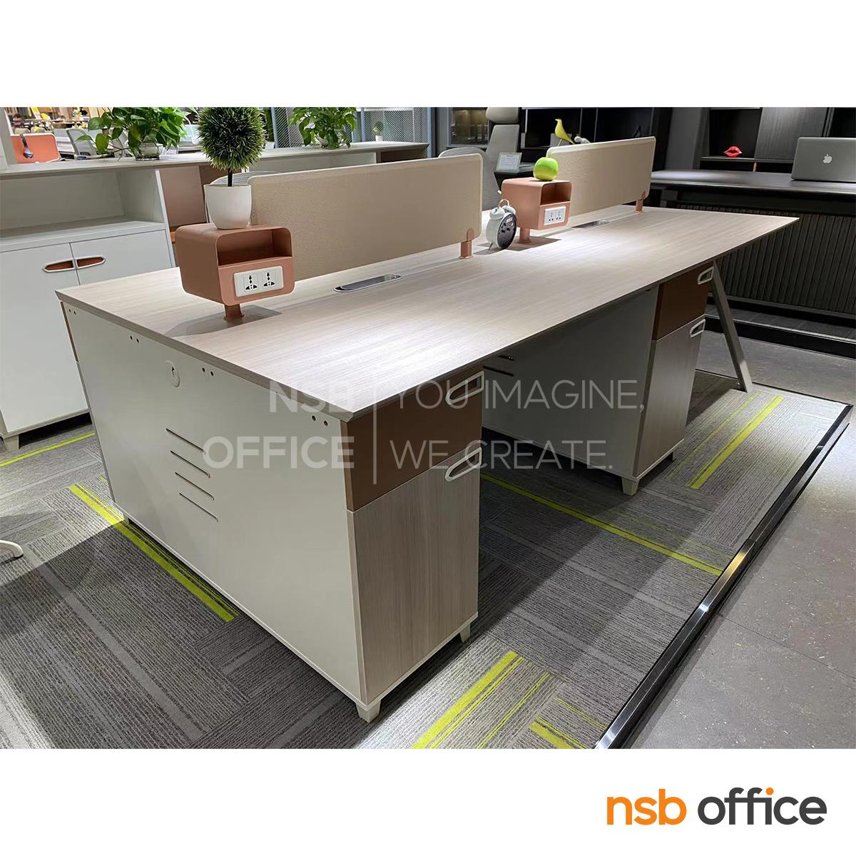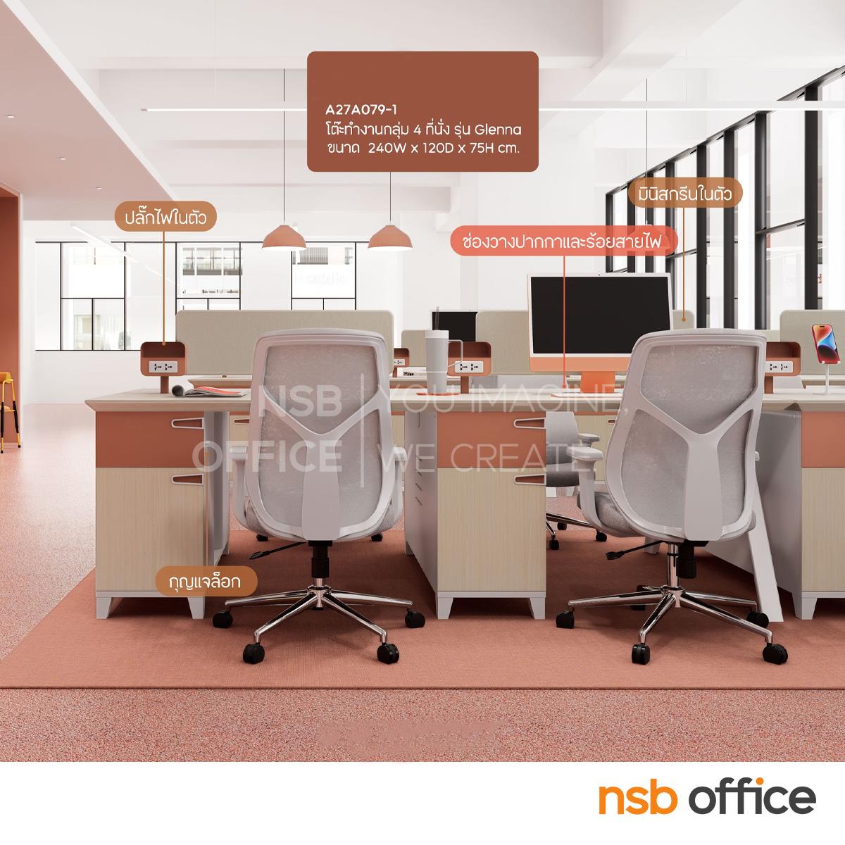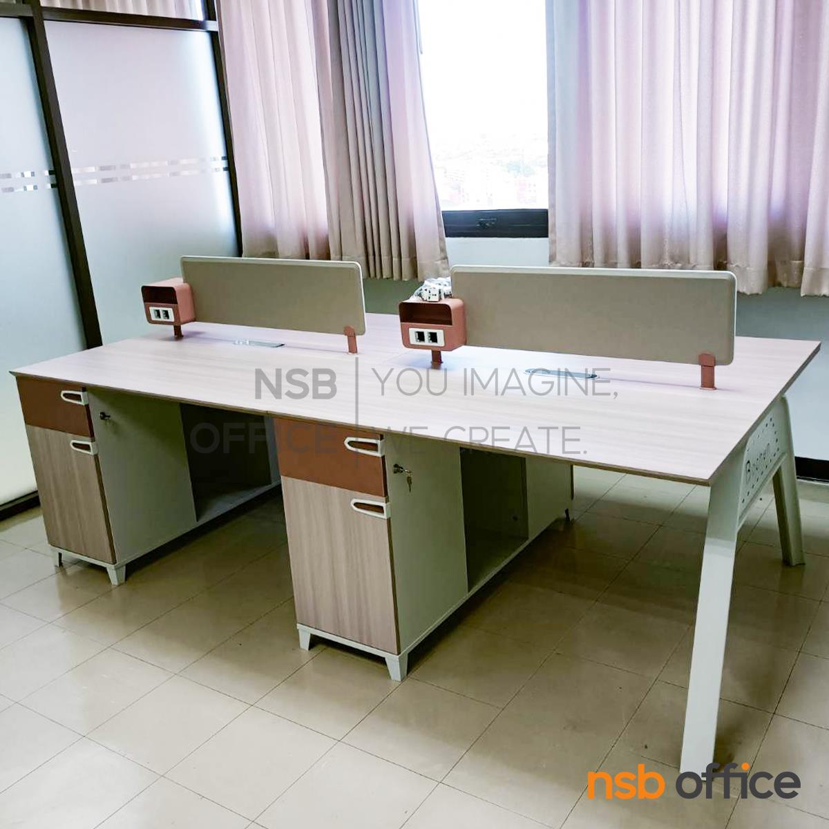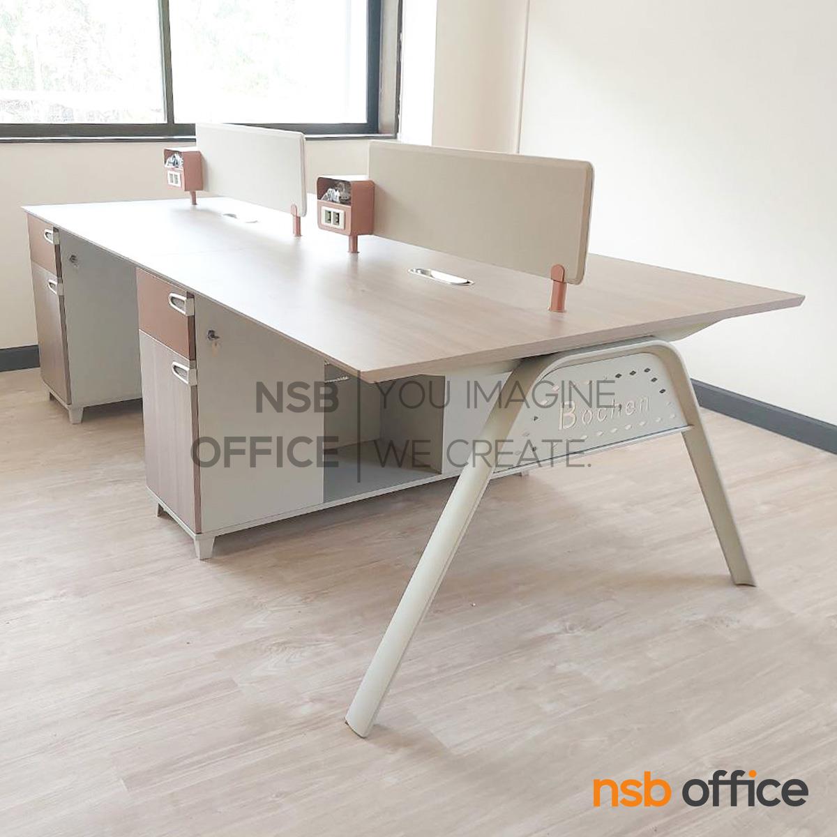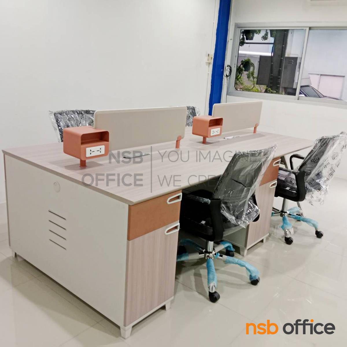 : โต๊ะทำงานกลุ่ม รุ่น Odile (โอดีล) ขนาด 240W cm. (4 ที่นั่ง) พร้อมมินิสกรีนและตู้เก็บของ