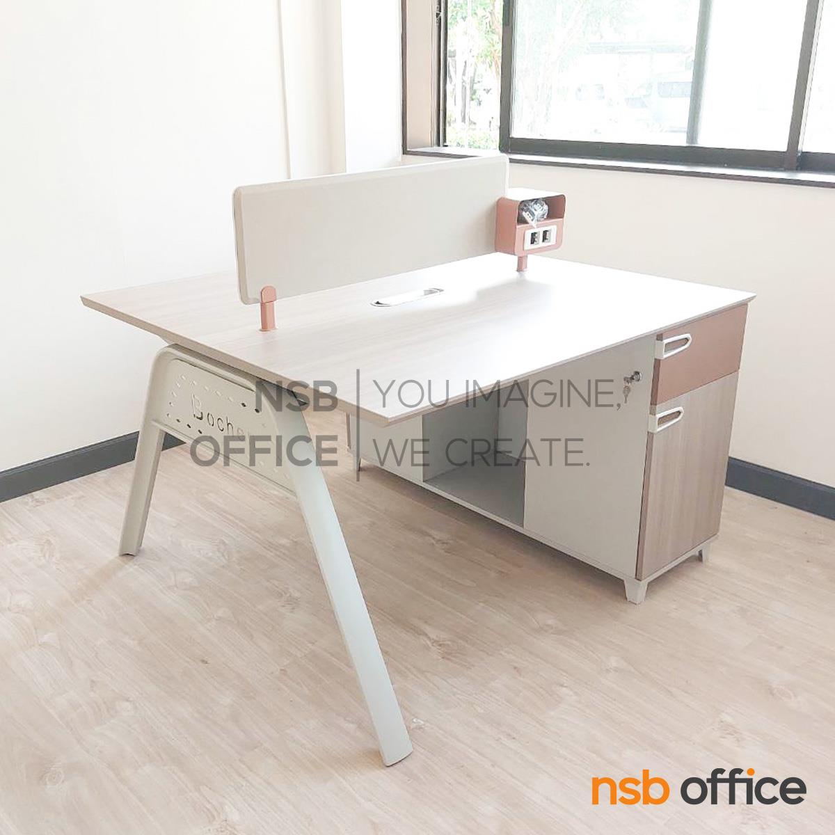 : โต๊ะทำงานกลุ่ม รุ่น Odile (โอดีล) ขนาด 120W cm. (2 ที่นั่ง) พร้อมมินิสกรีนและตู้เก็บของ