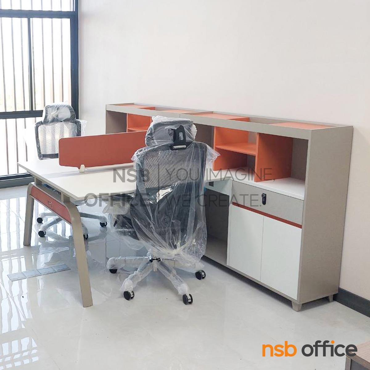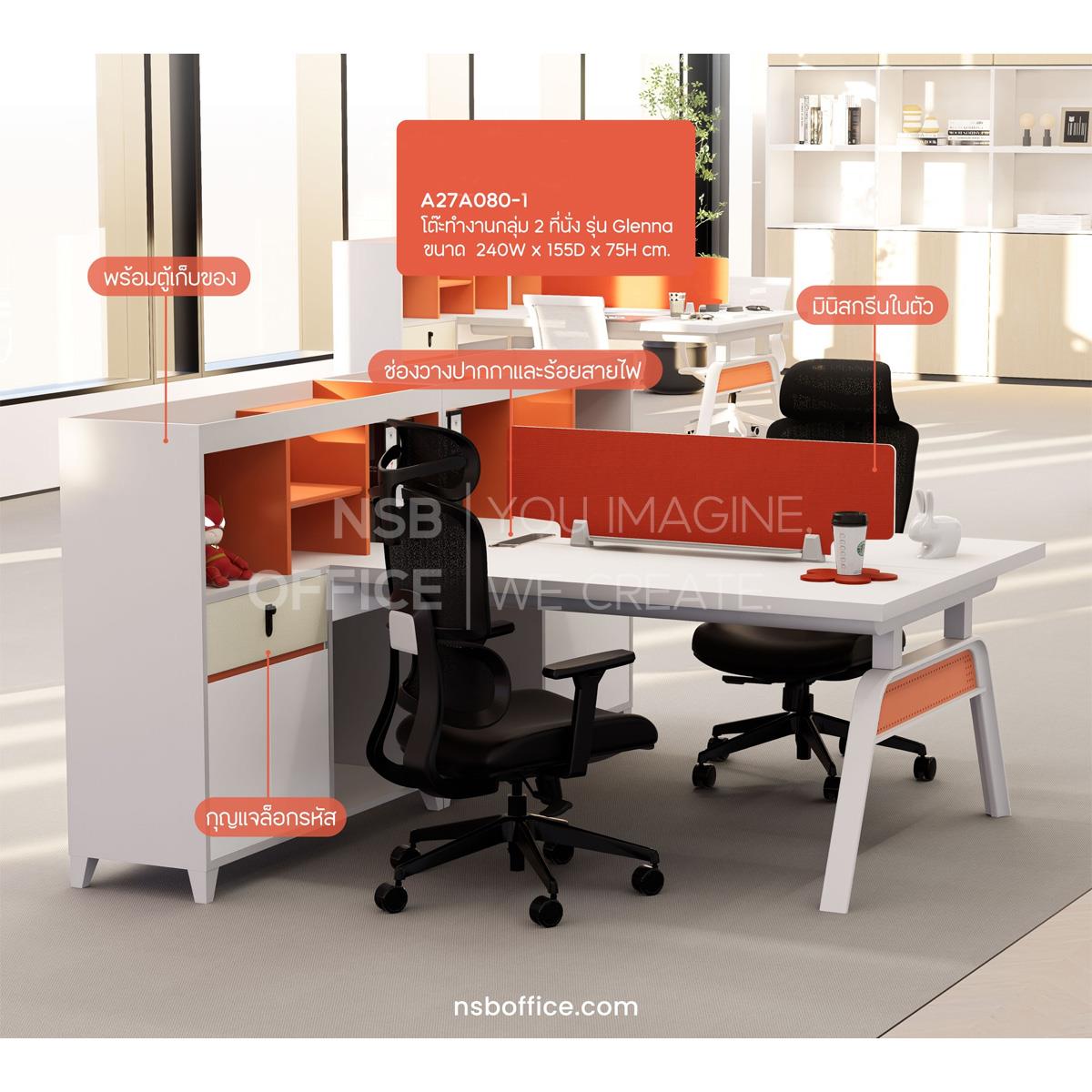 A27A080: โต๊ะทำงานกลุ่ม 2 ที่นั่ง รุ่น Glenna (เกลนนา) พร้อมมินิสกรีนและตู้เก็บของ