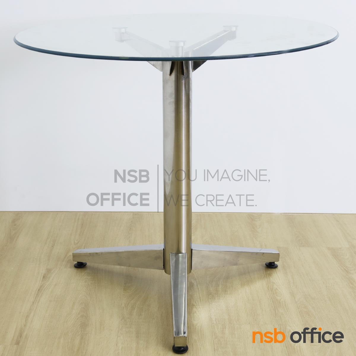 A09A144: โต๊ะกลมหน้ากระจก รุ่น Eugenie (ยูจินี) โครงขาสแตนเลส