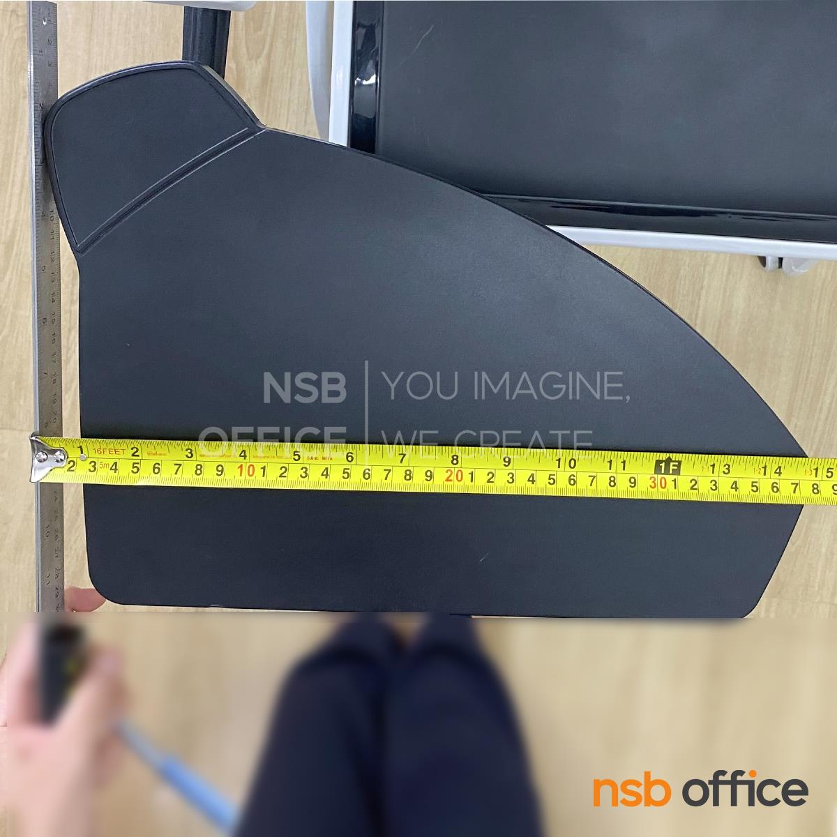 เท้าแขนแผ่นเลคเชอร์ของเก้าอี้อยู่ทางด้านขวา ออกแบบมาเพื่อการใช้งานสำหรับคนถนัดมือขวา