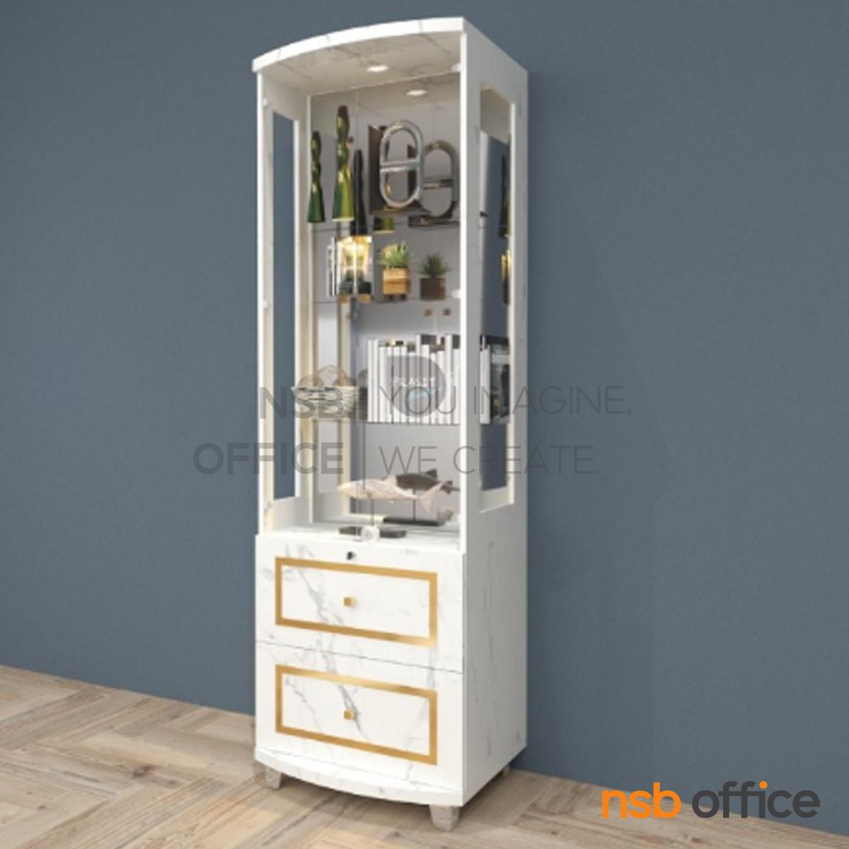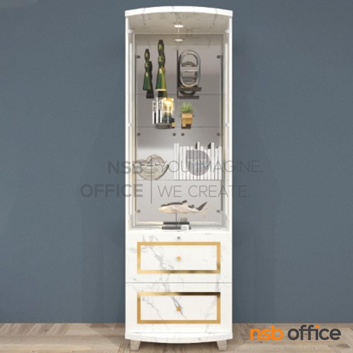 G06A080: ตู้โชว์กระจกดาวน์ไลท์ ลายหินอ่อนขอบทอง รุ่น Devon (เดวอน) ขนาด 60 ซม.