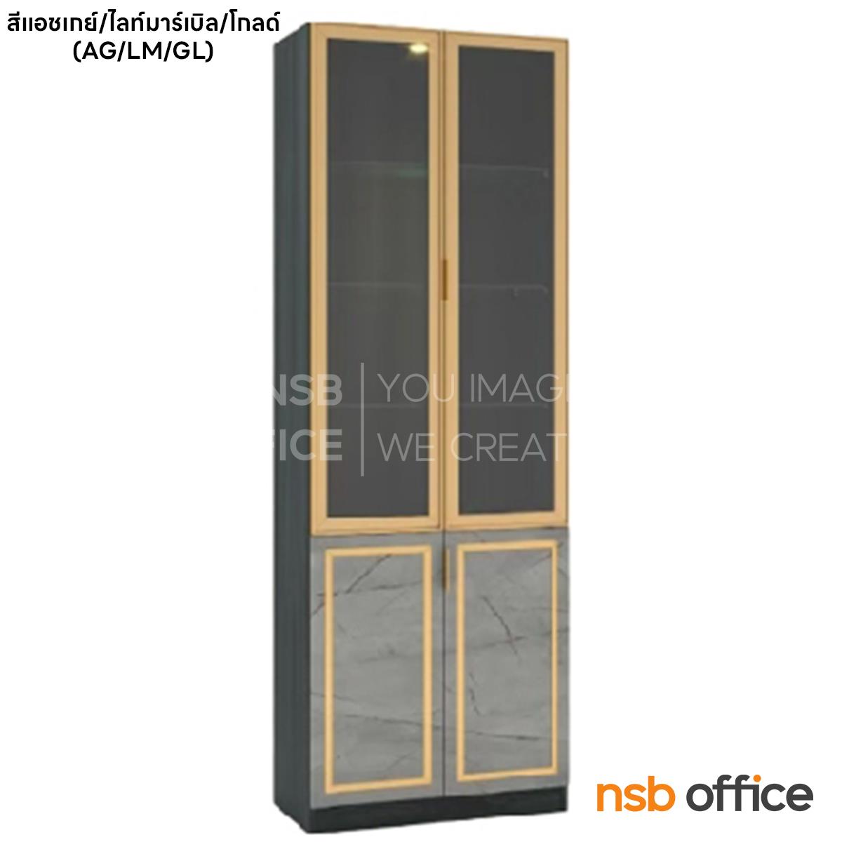 G06A082: ตู้โชว์กระจกดาวน์ไลท์ ลายหินอ่อนขอบทอง รุ่น Derrick (เดอร์ริค) ขนาด 80W cm.