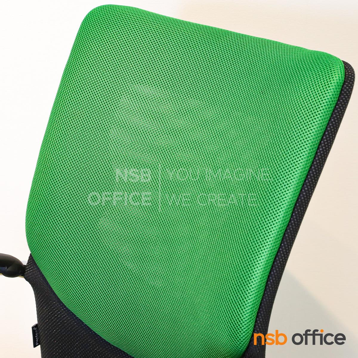 พนักพิงผลิตจากผ้าตาข่าย (Mesh) คุณสมบัติระบายอากาศได้ดี ลดความร้อนสะสมขณะใช้งาน พร้อมโครงสร้างรองรับแผ่นหลังเพื่อความสบายและรองรับสรีระในการนั่งทำงานระยะยาว