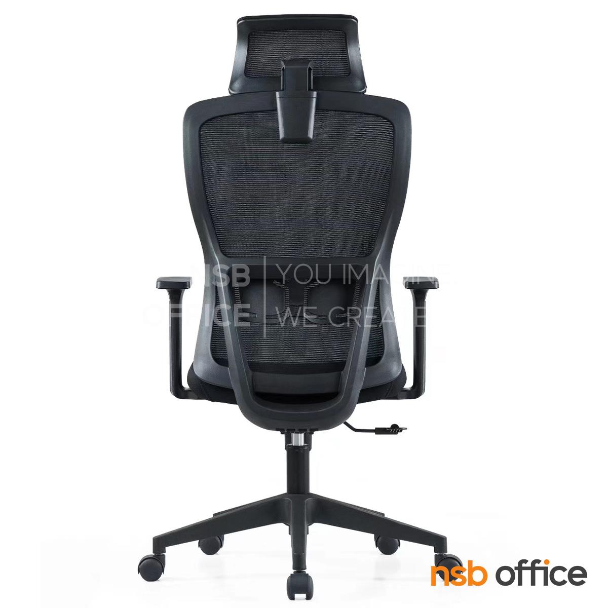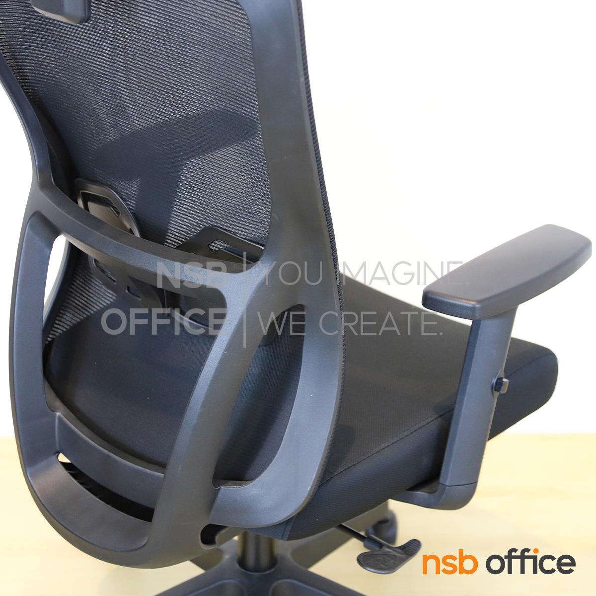 พนักพิงผลิตจากผ้าตาข่าย (Mesh) คุณสมบัติระบายอากาศได้ดี ลดความร้อนสะสมขณะใช้งาน พร้อมโครงสร้างรองรับแผ่นหลังเพื่อความสบายและรองรับสรีระในการนั่งทำงานระยะยาว