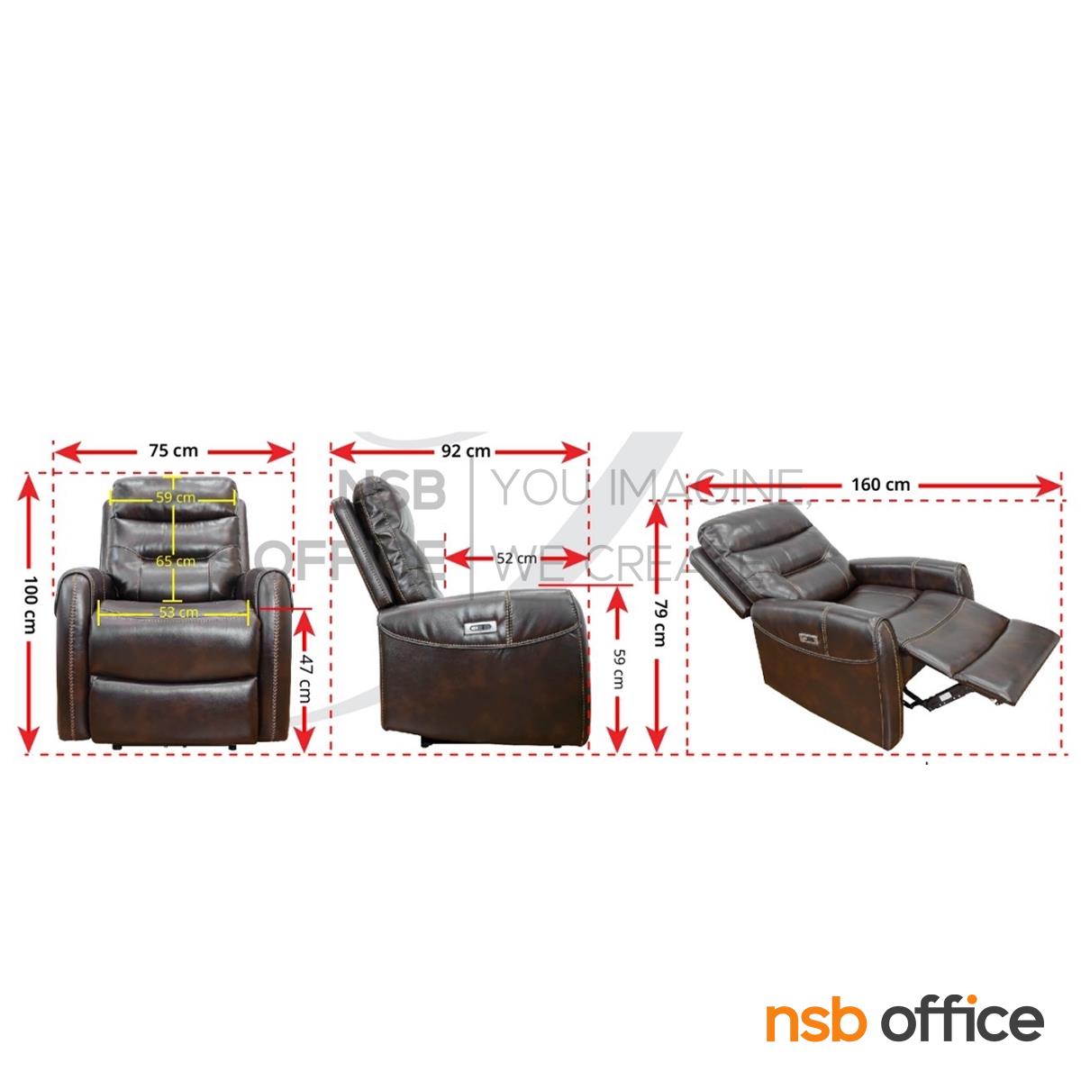 : โซฟาพักผ่อนหนังเทียม รุ่น Hontas (ฮอนทัส) ขนาด 75W cm. สามารถปรับเอนนอนได้ด้วยระบบไฟฟ้า