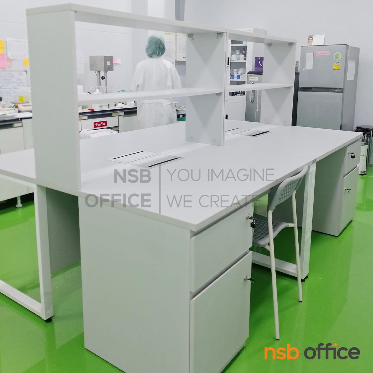 C12A046: โต๊ะห้องแล็บ ท็อปลามิเนต HPL แบบมีชั้นต่อบน รุ่น Courtney (คอร์ทนีย์) พร้อมป๊อปอัพ กึ่งกลางโต๊ะ รุ่น A24A047-1