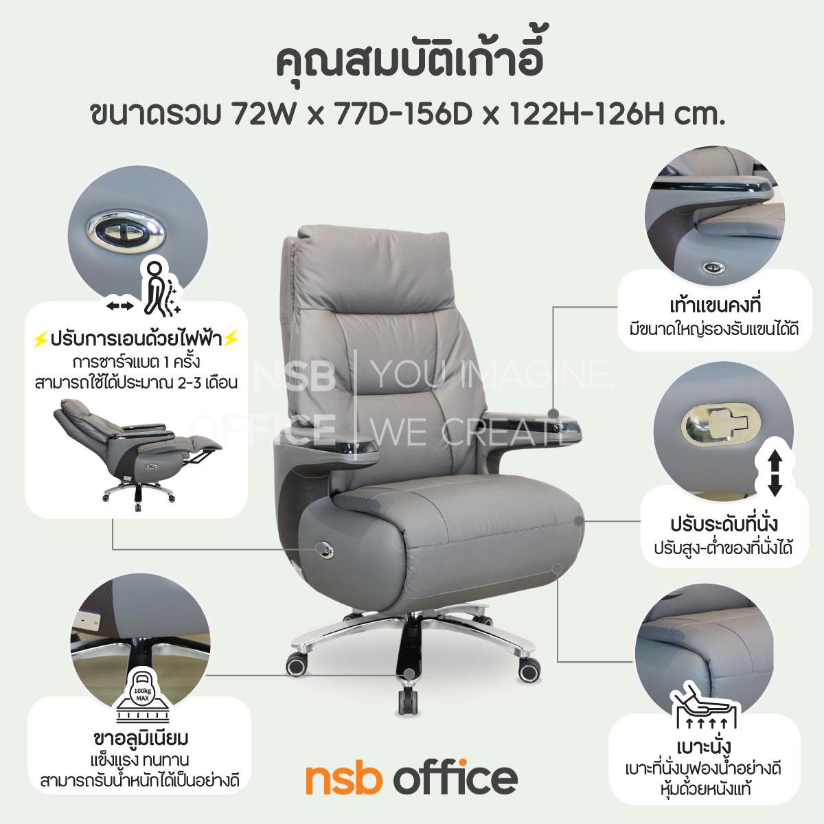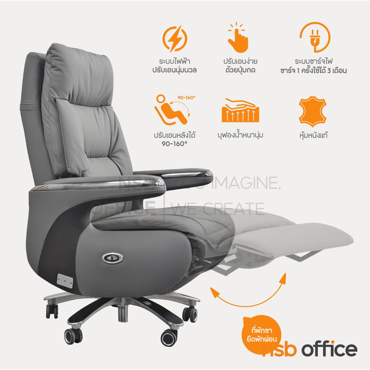 : เก้าอี้ผู้บริหารหุ้มหนังแท้ รุ่น Clara (คลาร่า) โช้คแก๊ส มีก้อนโยก ขาอลูมิเนียม