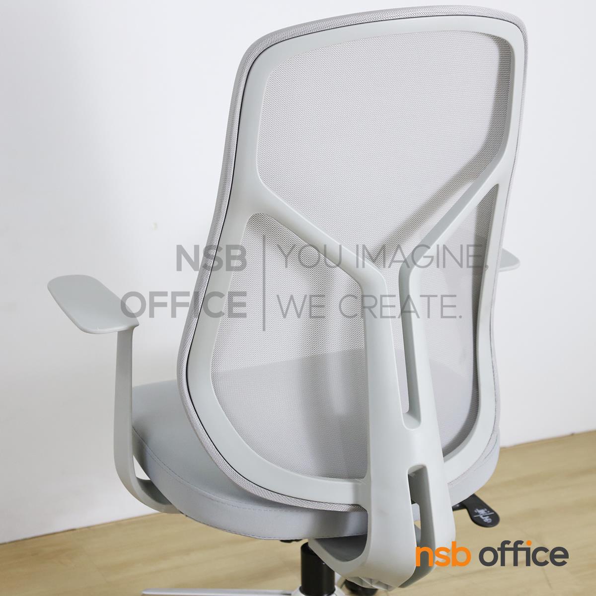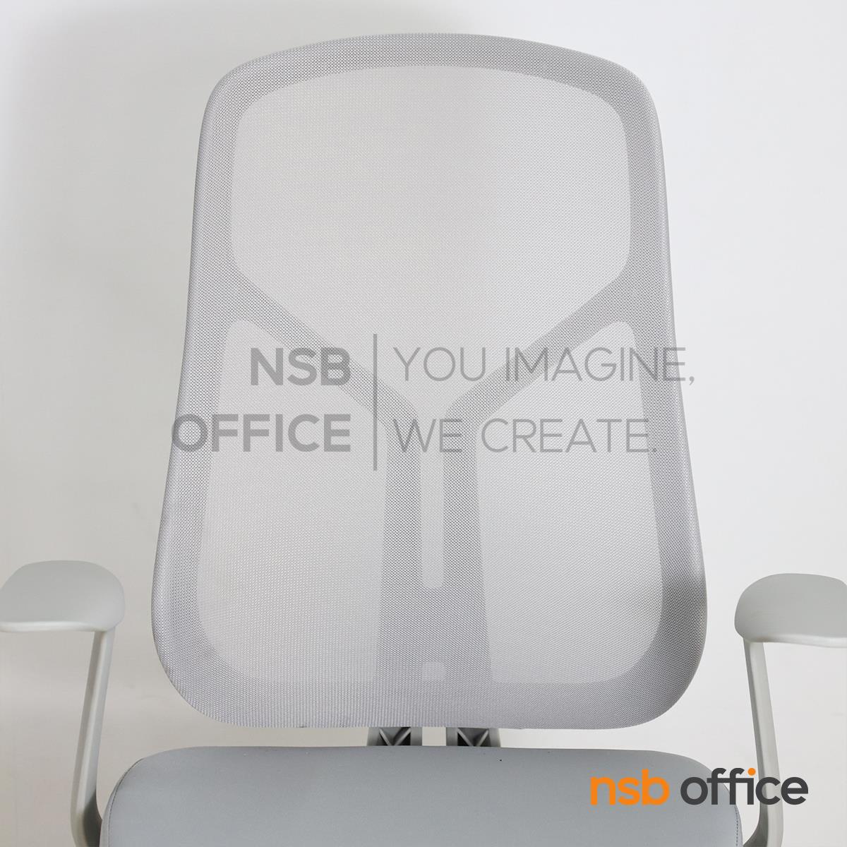 พนักพิงผลิตจากผ้าตาข่าย (Mesh) คุณสมบัติระบายอากาศได้ดี ลดความร้อนสะสมขณะใช้งาน พร้อมโครงสร้างรองรับแผ่นหลังเพื่อความสบายและรองรับสรีระในการนั่งทำงานระยะยาว
