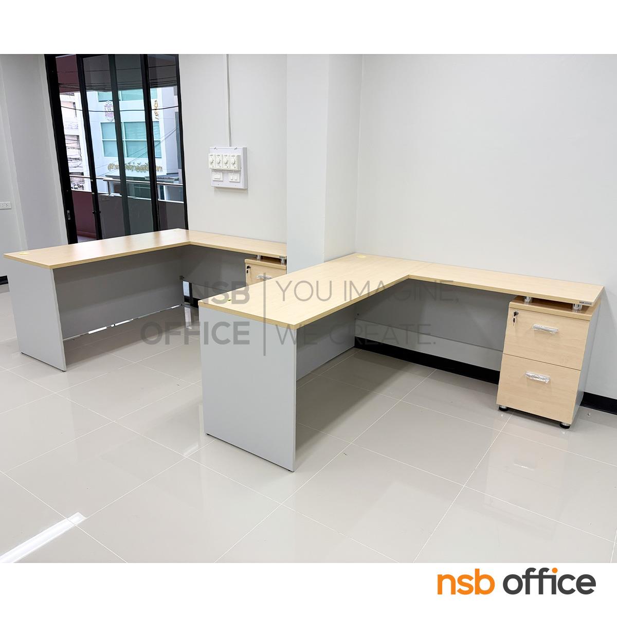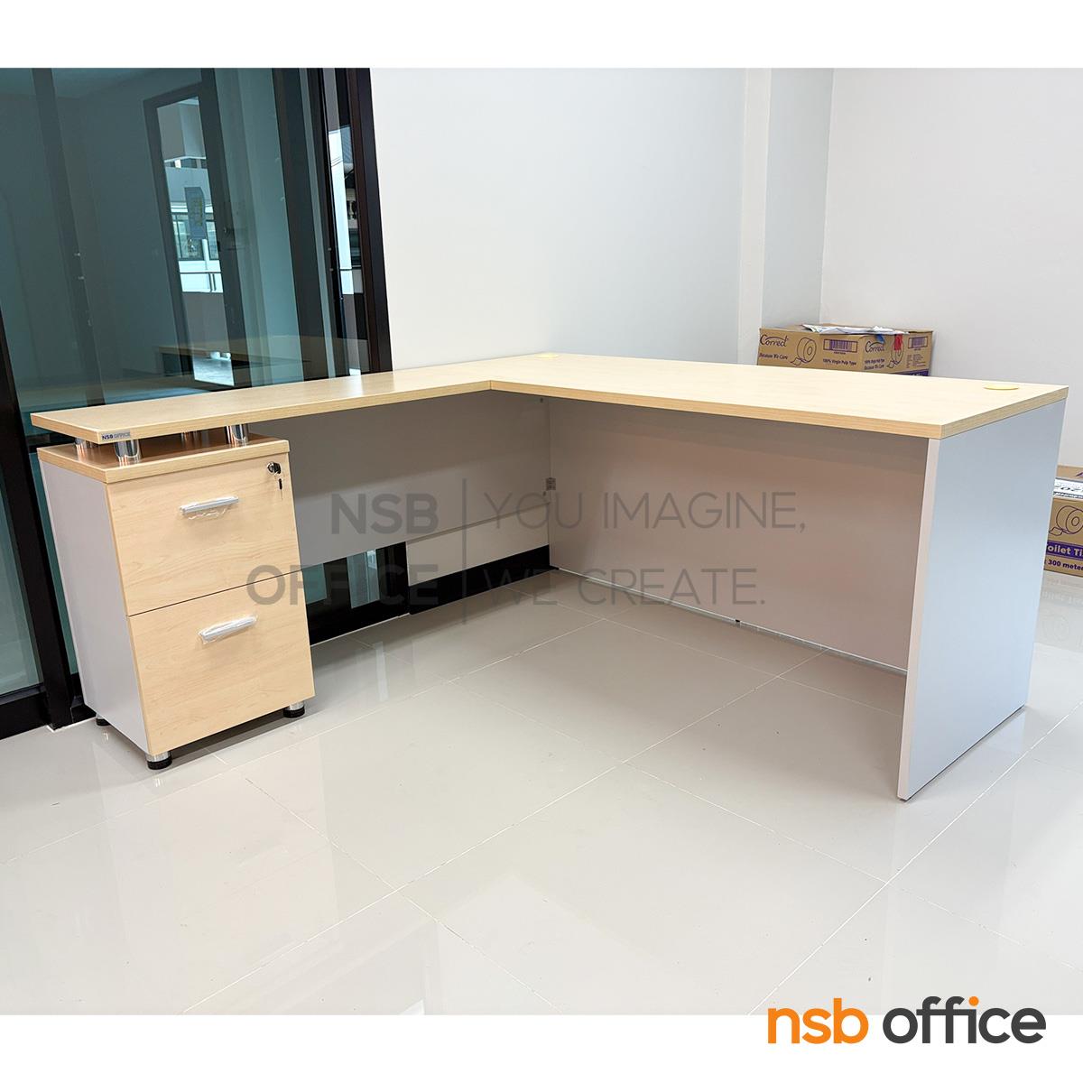 : โต๊ะทำงานตัวแอล รุ่น Britain (บริเทนส์) แอลซ้าย ตู้ข้าง 2 ลิ้นชัก