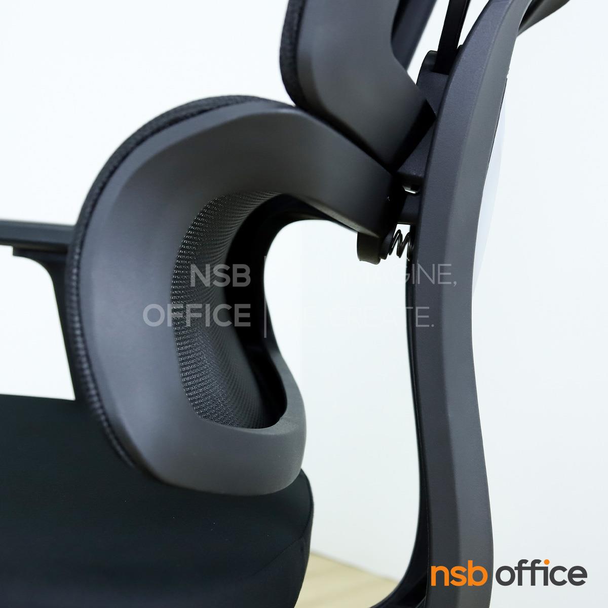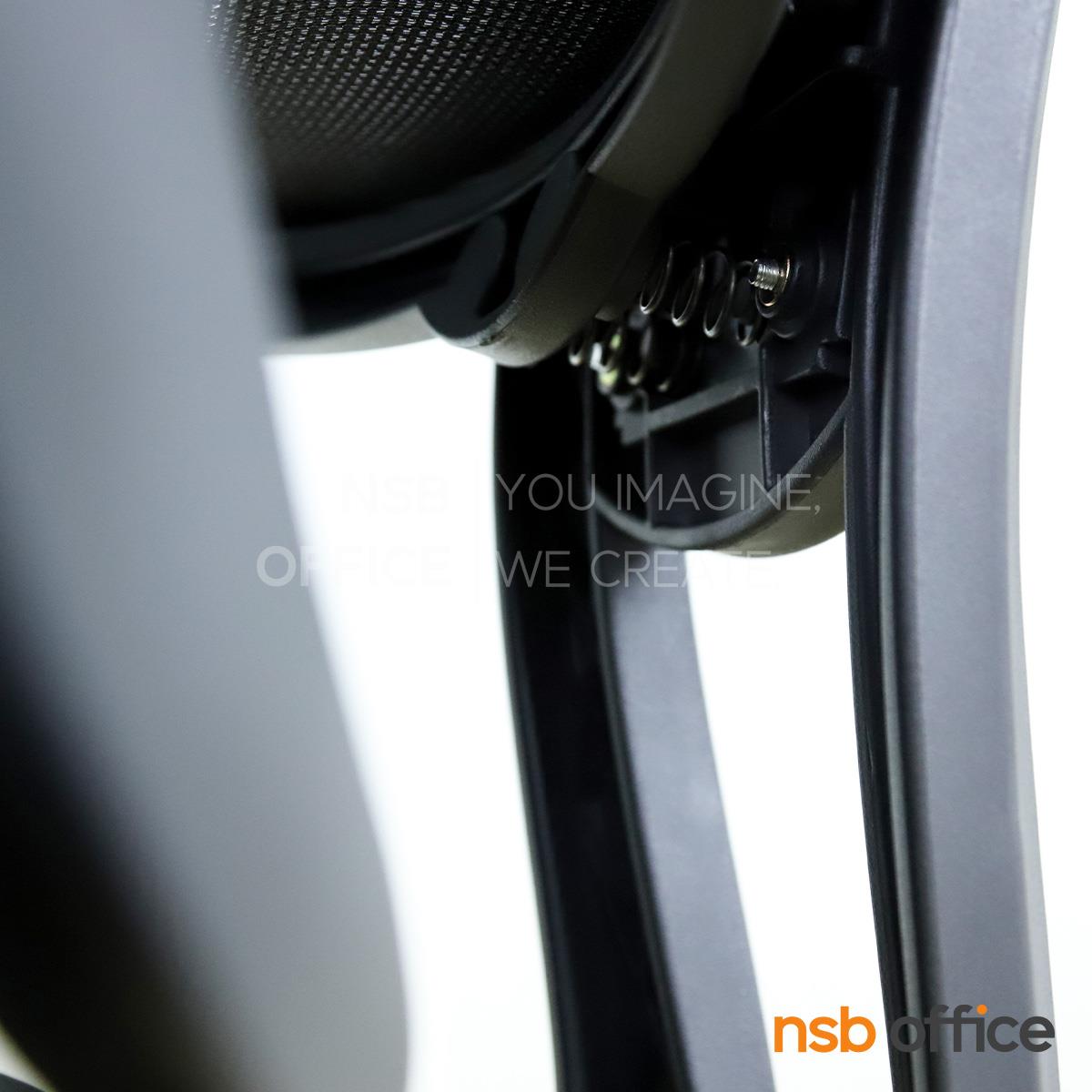 พนักพิงผลิตจากผ้าตาข่าย (Mesh) คุณสมบัติระบายอากาศได้ดี ลดความร้อนสะสมขณะใช้งาน พร้อมโครงสร้างรองรับแผ่นหลังเพื่อความสบายและรองรับสรีระในการนั่งทำงานระยะยาว