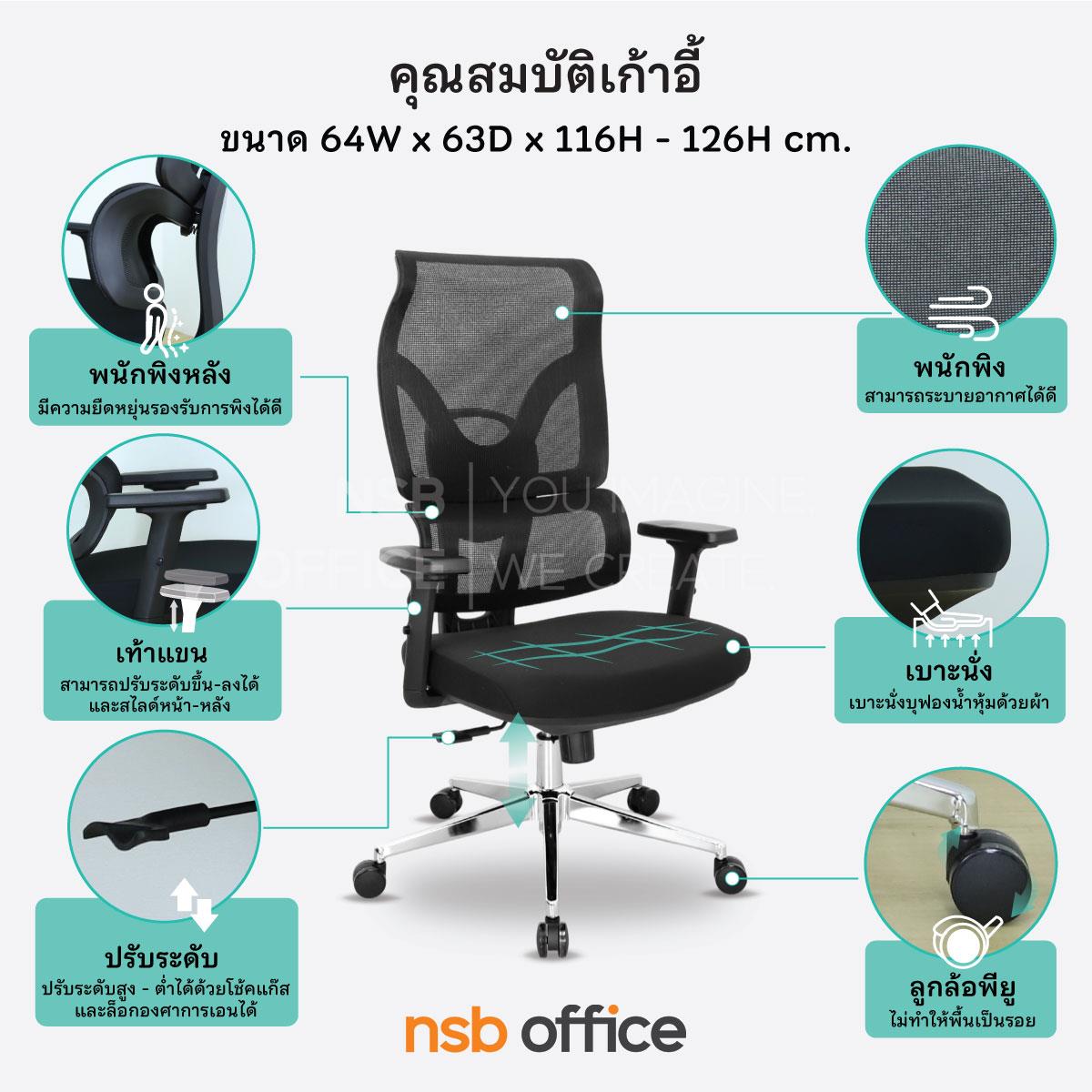 : เก้าอี้ผู้บริหารหลังเน็ต รุ่น Omega (โอเมก้า) โช๊คแก๊ส ก้อนโยก ขาเหล็กชุบโครเมียม