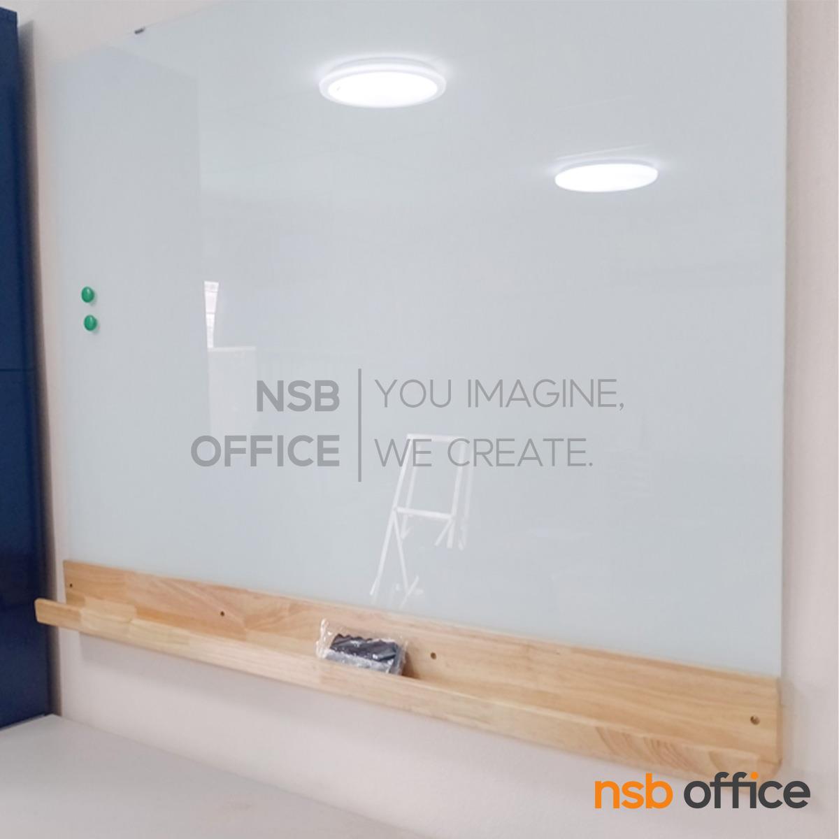 G01A084: ไวท์บอร์ดกระจกแม่เหล็ก พร้อมถาดวางปากกาแบบไม้ยาว รุ่น Vexis (เวซิส) ขนาด 120W, 150W, 200W cm.