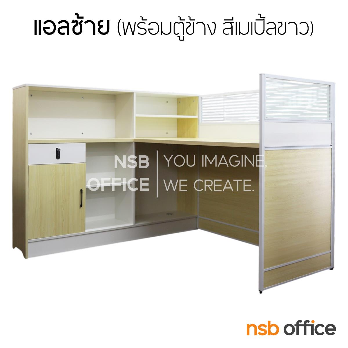 : โต๊ะทำงาน 1 ที่นั่ง รุ่น Zenith (ซีนิธ) แอลขวา พร้อมตู้ข้าง สีเมเปิ้ลขาว
