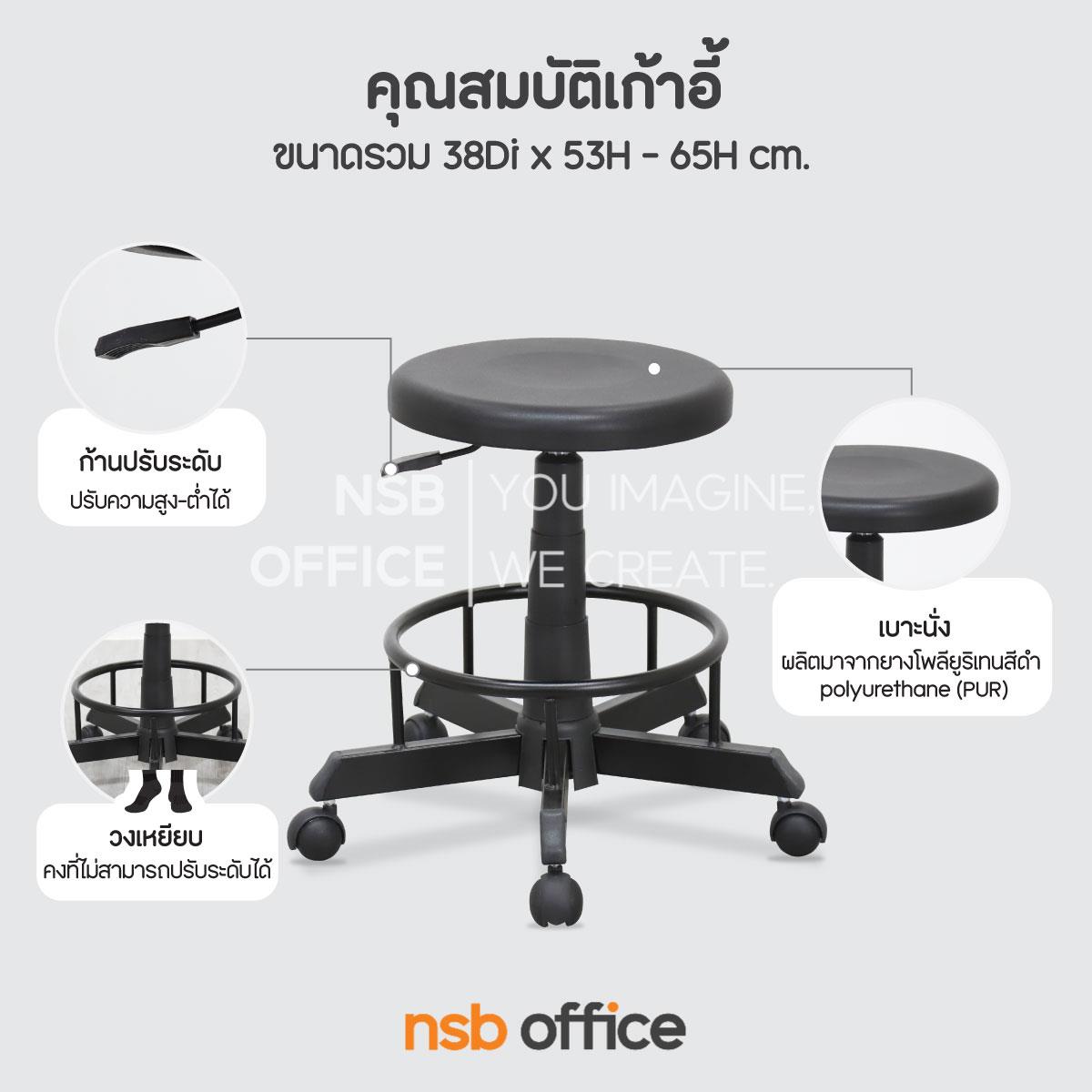 : เก้าอี้บาร์สตูลที่นั่ง PU กลม รุ่น Jovix (โจวิกซ์) ล้อเลื่อน โช้คแก๊ส ขาเหล็กกล่อง