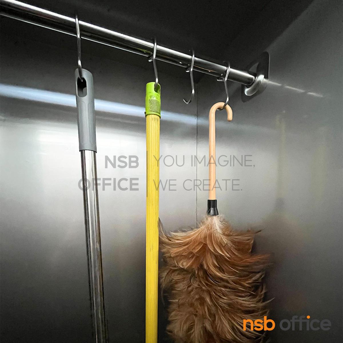 ภายในมีราว และตะขอเกี่ยวสำหรับแขวนไม้ม็อบ