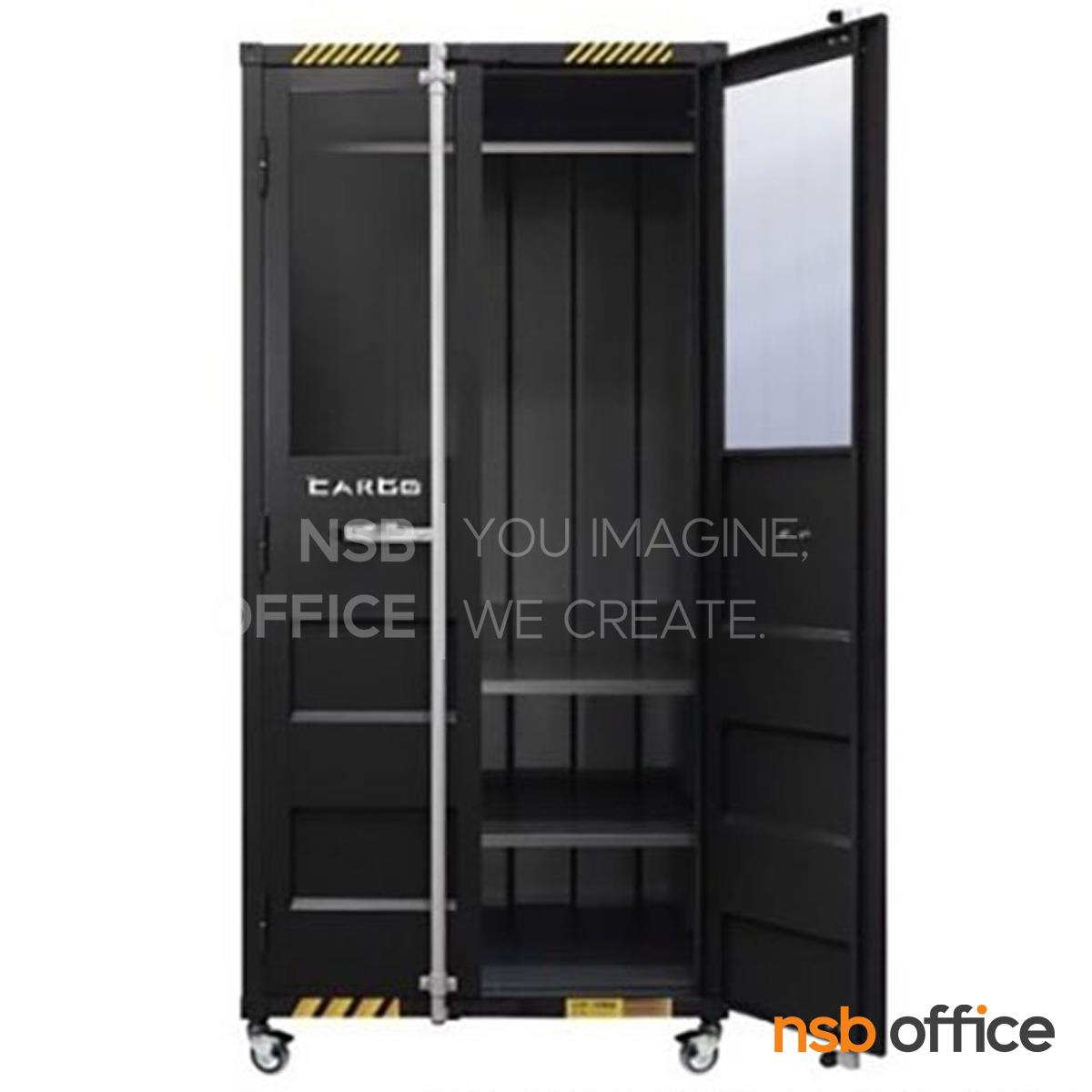 E05A010: ตู้เสื้อผ้า 2 บานเปิด ชนิดบานกระจกบน รุ่น Zeylan (เซย์ลัน) ขนาด 90W*60D*195H cm.