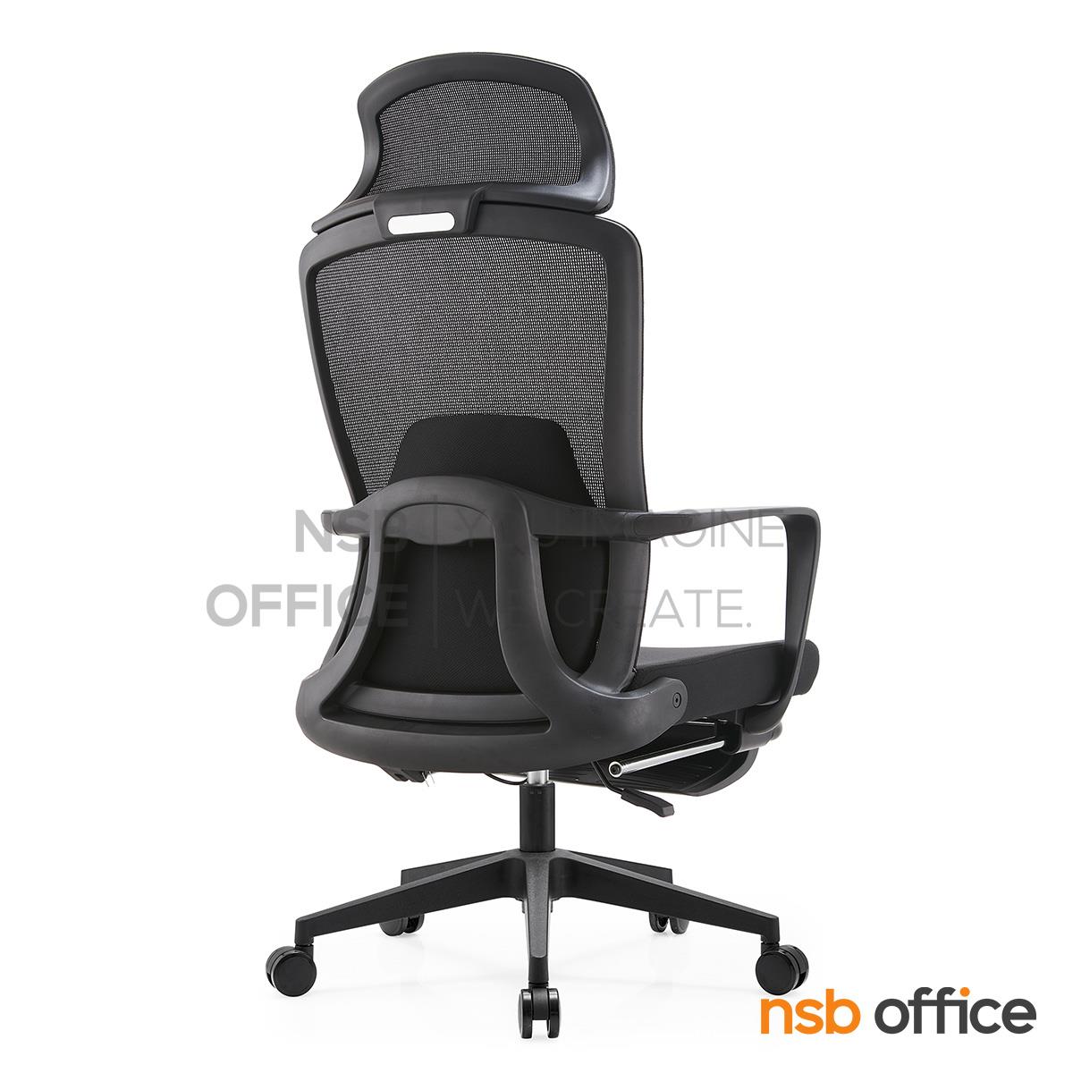 พนักพิงผลิตจากผ้าตาข่าย (Mesh) คุณสมบัติระบายอากาศได้ดี ลดความร้อนสะสมขณะใช้งาน พร้อมโครงสร้างรองรับแผ่นหลังเพื่อความสบายและรองรับสรีระในการนั่งทำงานระยะยาว