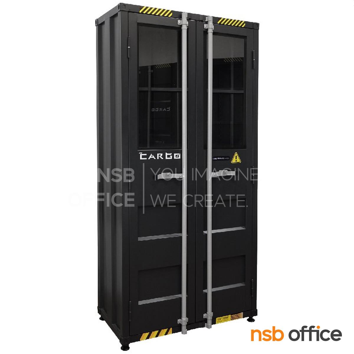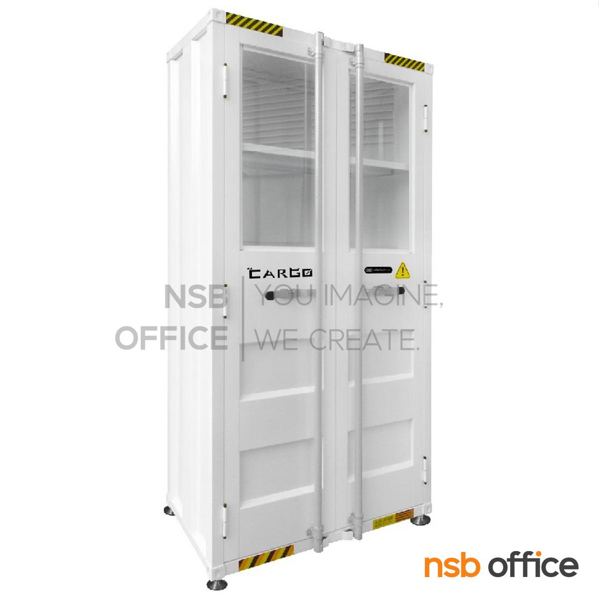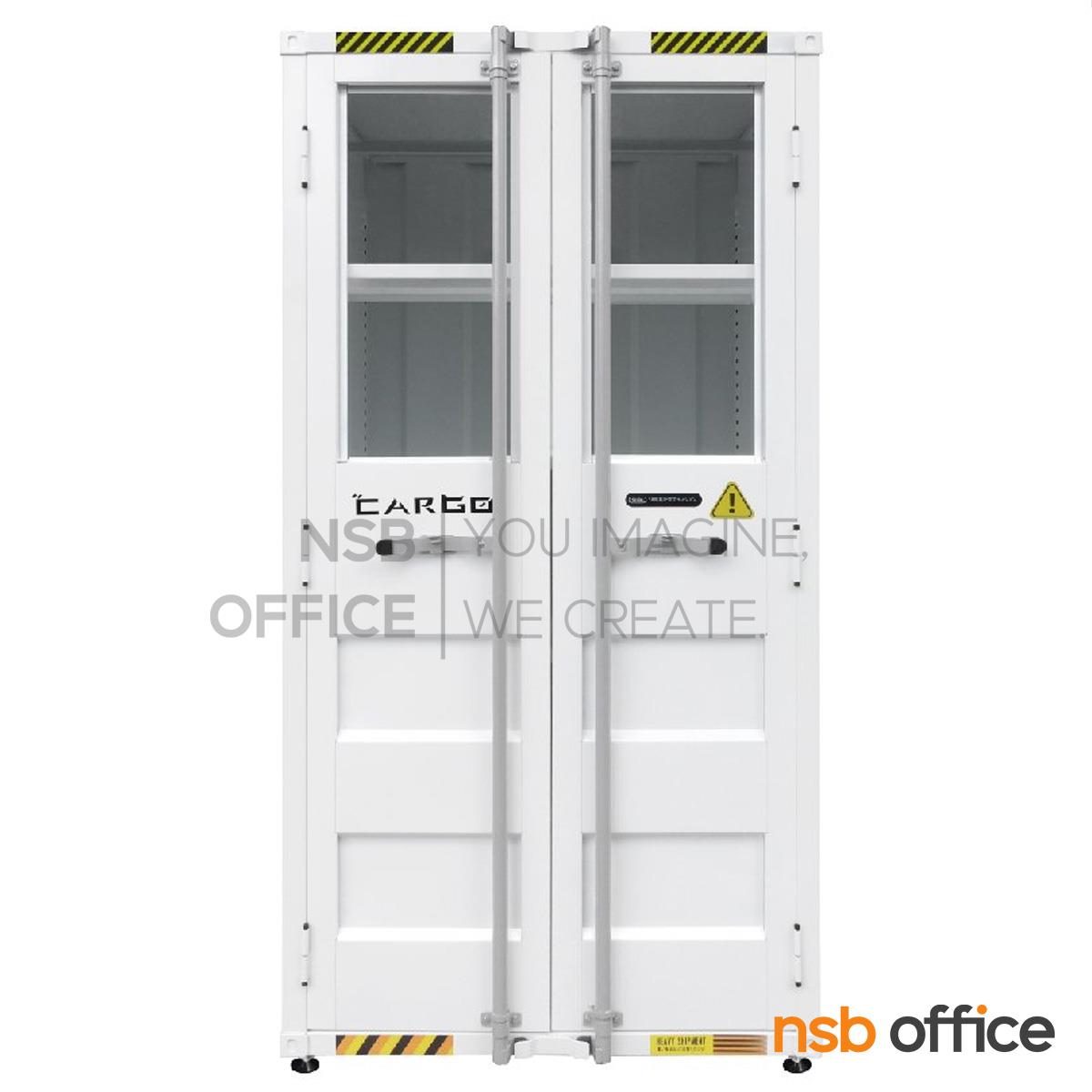 E07A136: ตู้เหล็ก 2 บานเปิด ชนิดบานเปิดกระจกบน รุ่น Elvar (เอลวาร์) ขนาด 90W*45D*183H cm.