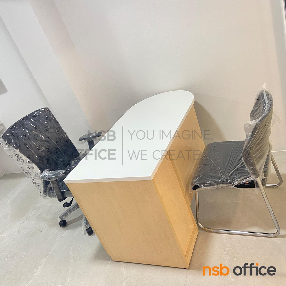 A10A154: โต๊ะทำงาน โต๊ะตรวจหัวโค้ง รุ่น Elvorn (เอลวอร์น) ขนาด 120W cm. ขาเหล็กกลม