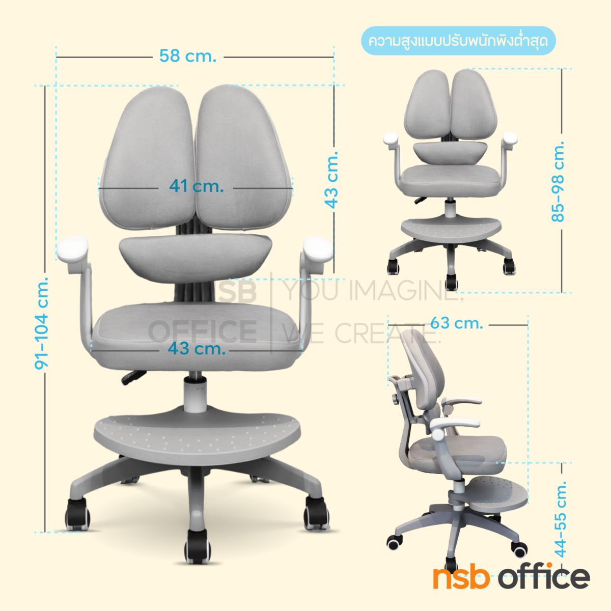 ออกแบบมาเพื่อรองรับสรีระของเด็กโดยเฉพาะ ช่วยส่งเสริมท่านั่งที่ถูกต้อง ลดความเมื่อยล้าเมื่อต้องนั่งเป็นเวลานาน ทั้งขณะทำการบ้าน อ่านหนังสือ หรือใช้คอมพิวเตอร์ พนักพิงถูกออกแบบให้รองรับแนวกระดูกสันหลังอย่างเหมาะสม ช่วยลดแรงกดทับที่หลังและไหล่