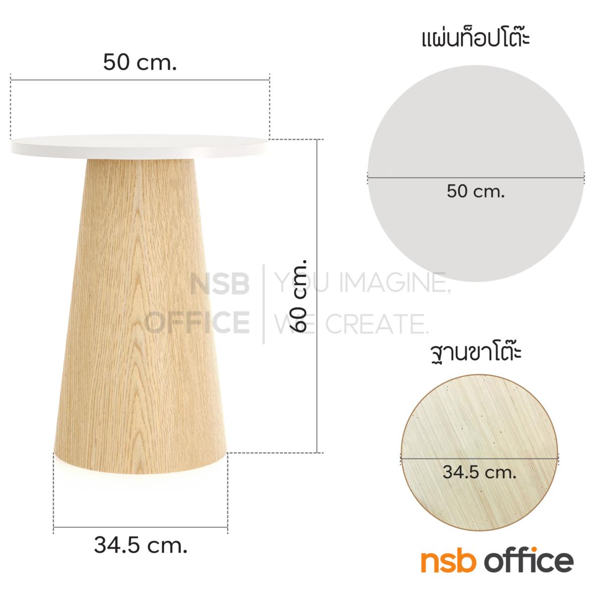 : โต๊ะเคียงหน้าท็อปกลม ขาไม้จริง สูง 60 cm. รุ่น Terra (เทอร่า)