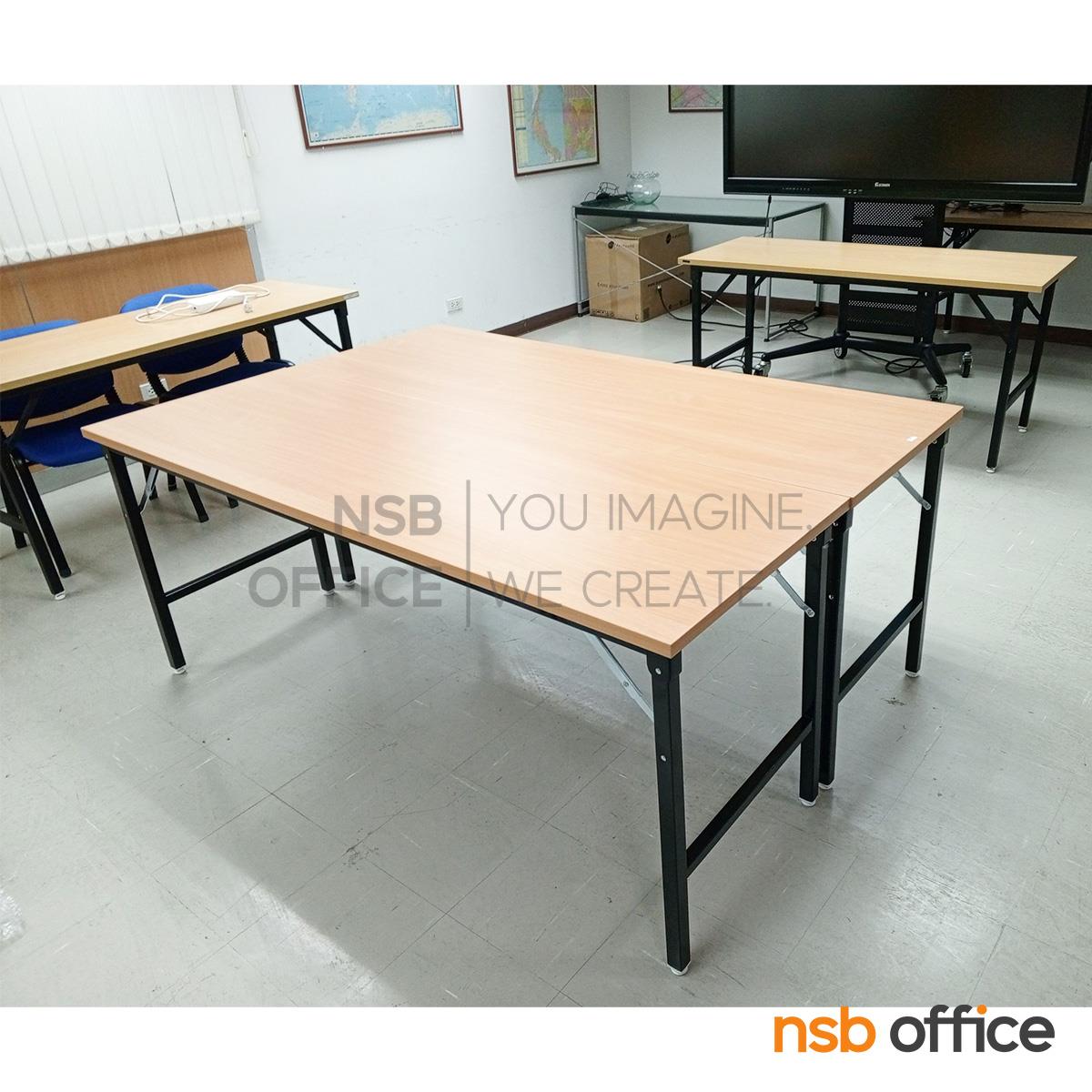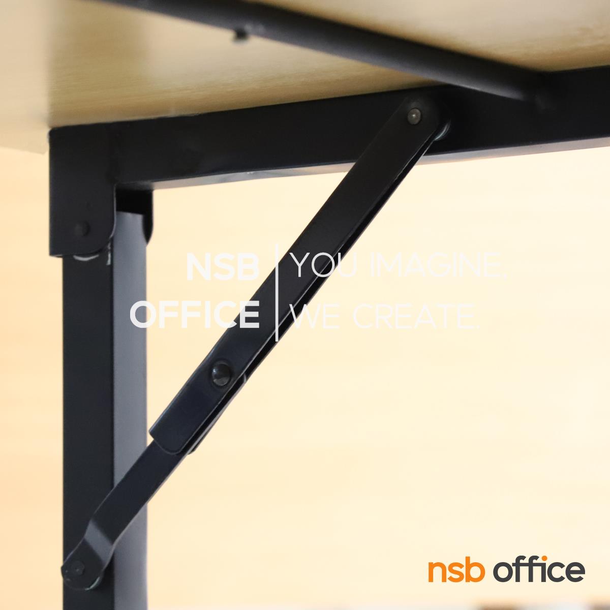 : โต๊ะพับหน้าเมลามีนลายไม้ รุ่น Zyxen (ไซเซน) ขาเหล็กพ่นดำ