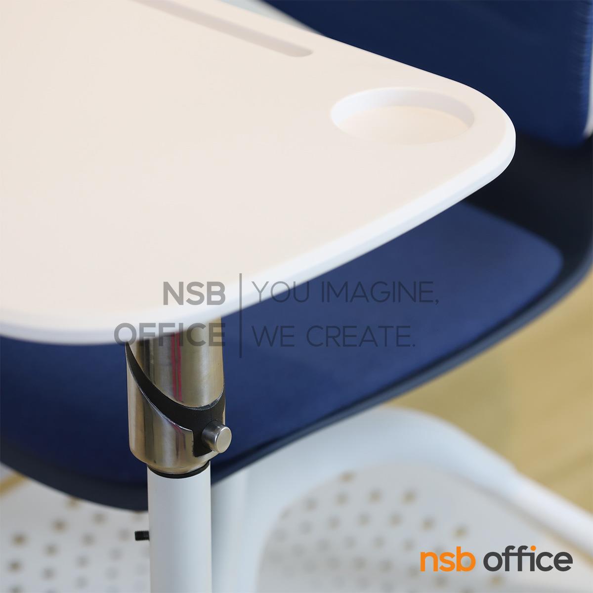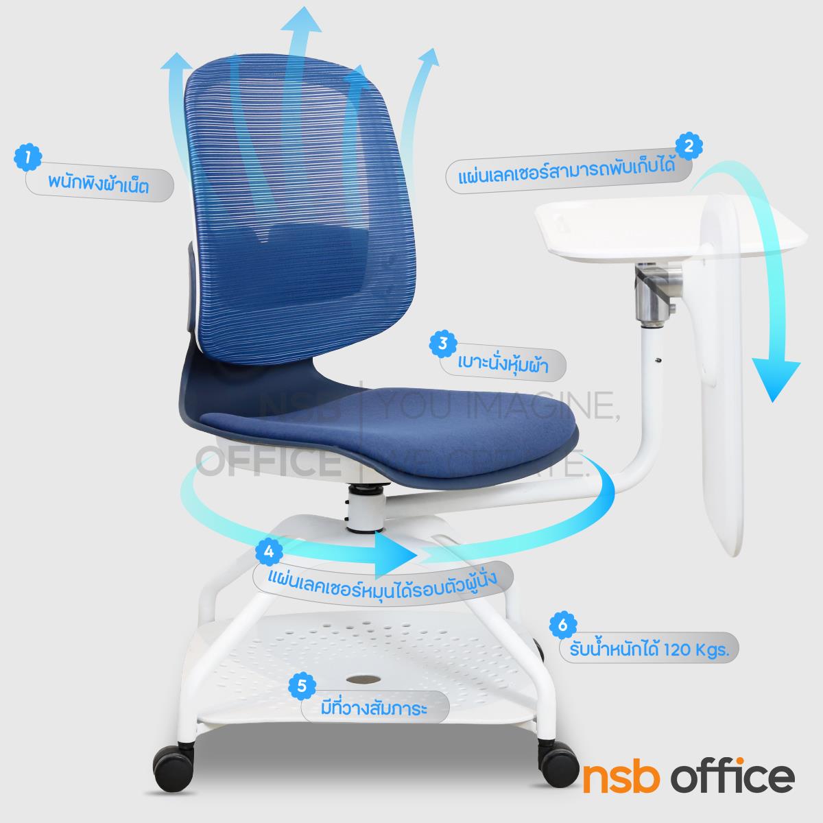 เท้าแขนแผ่นเลคเชอร์ของเก้าอี้สามารถหมุนได้รอบตัว ออกแบบมาเพื่อการใช้งานได้ทั้งมือขวา และมือซ้าย