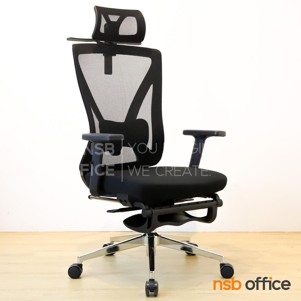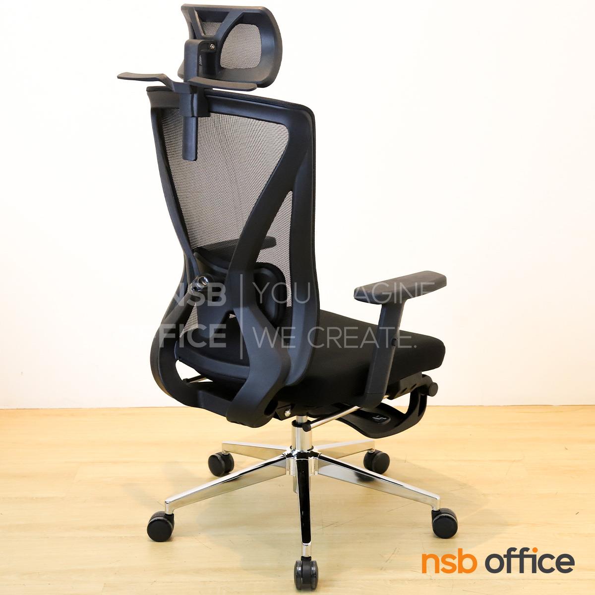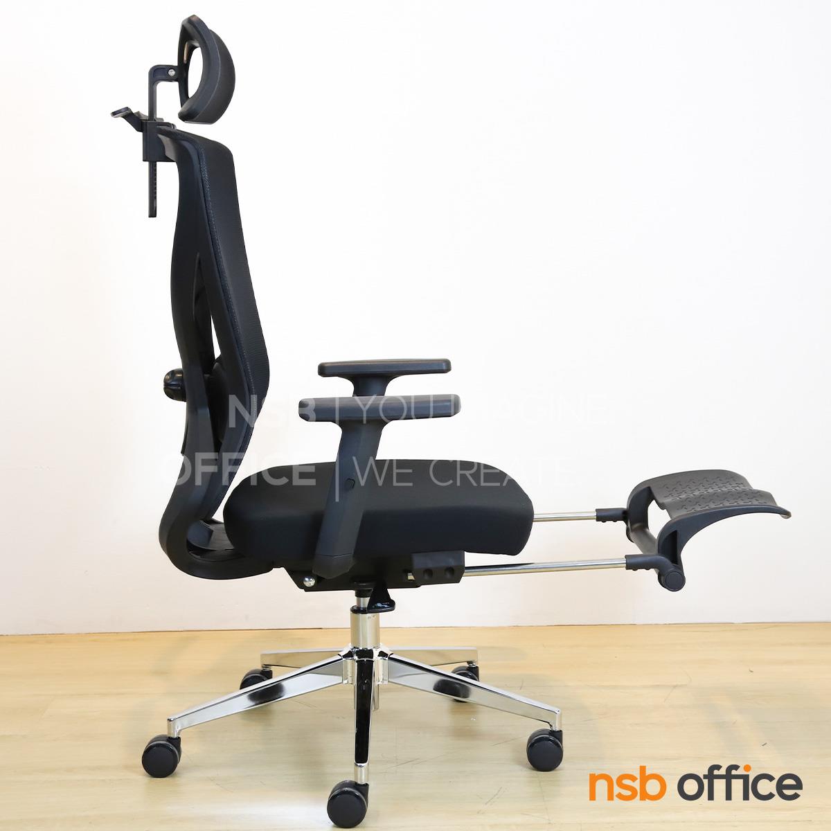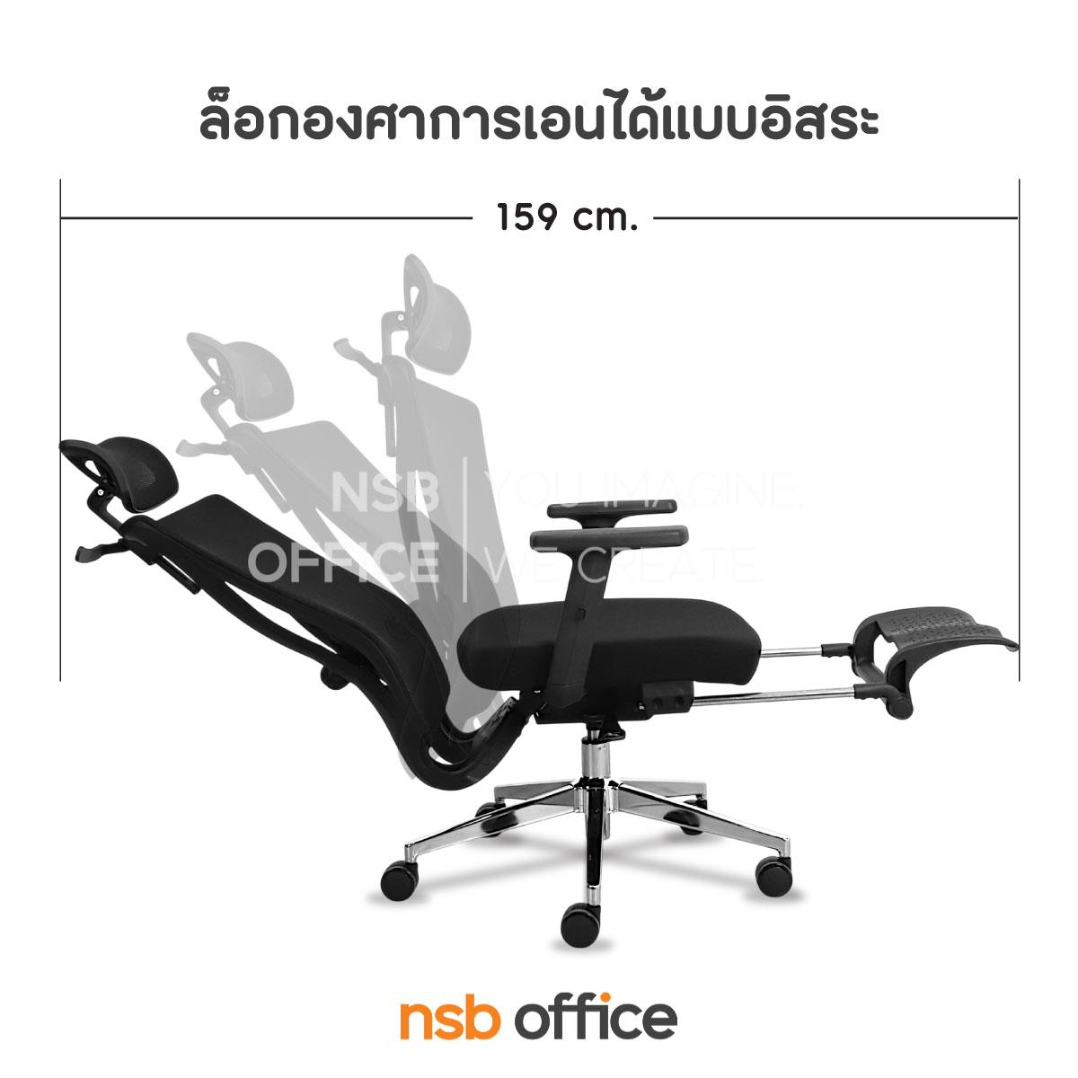 : เก้าอี้ผู้บริหารหลังเน็ต มีที่วางพักเท้า รุ่น Nyros (ไนรอส) โช้คแก๊ส ก้อนโยก ขาเหล็กชุบโครเมียม