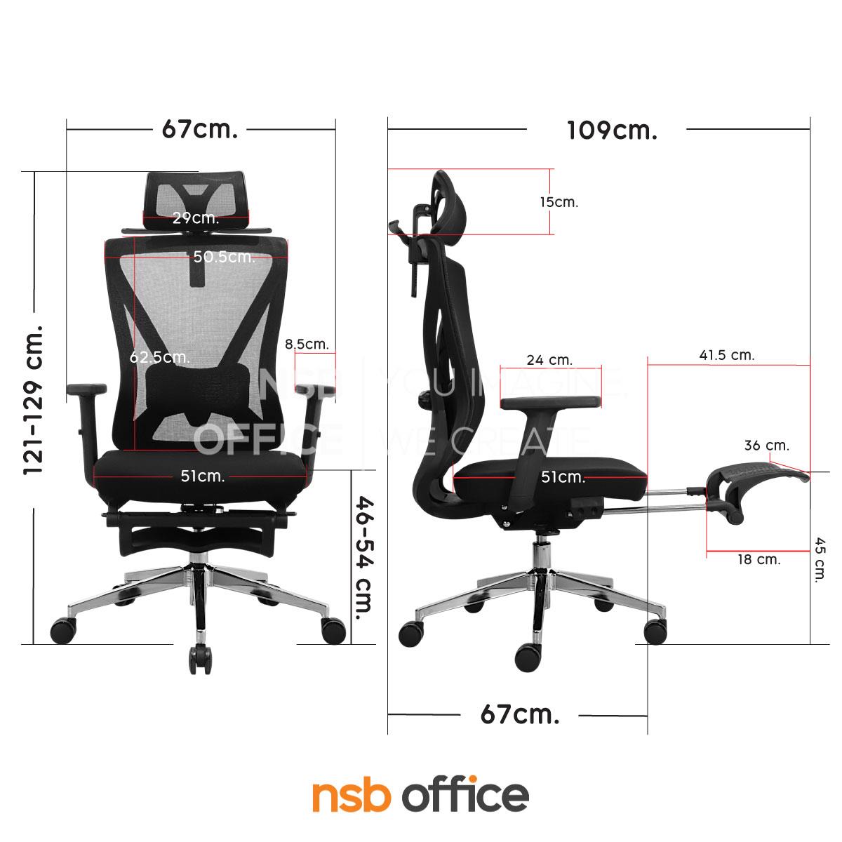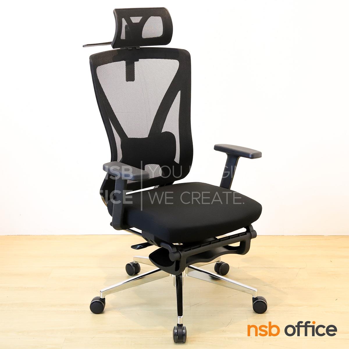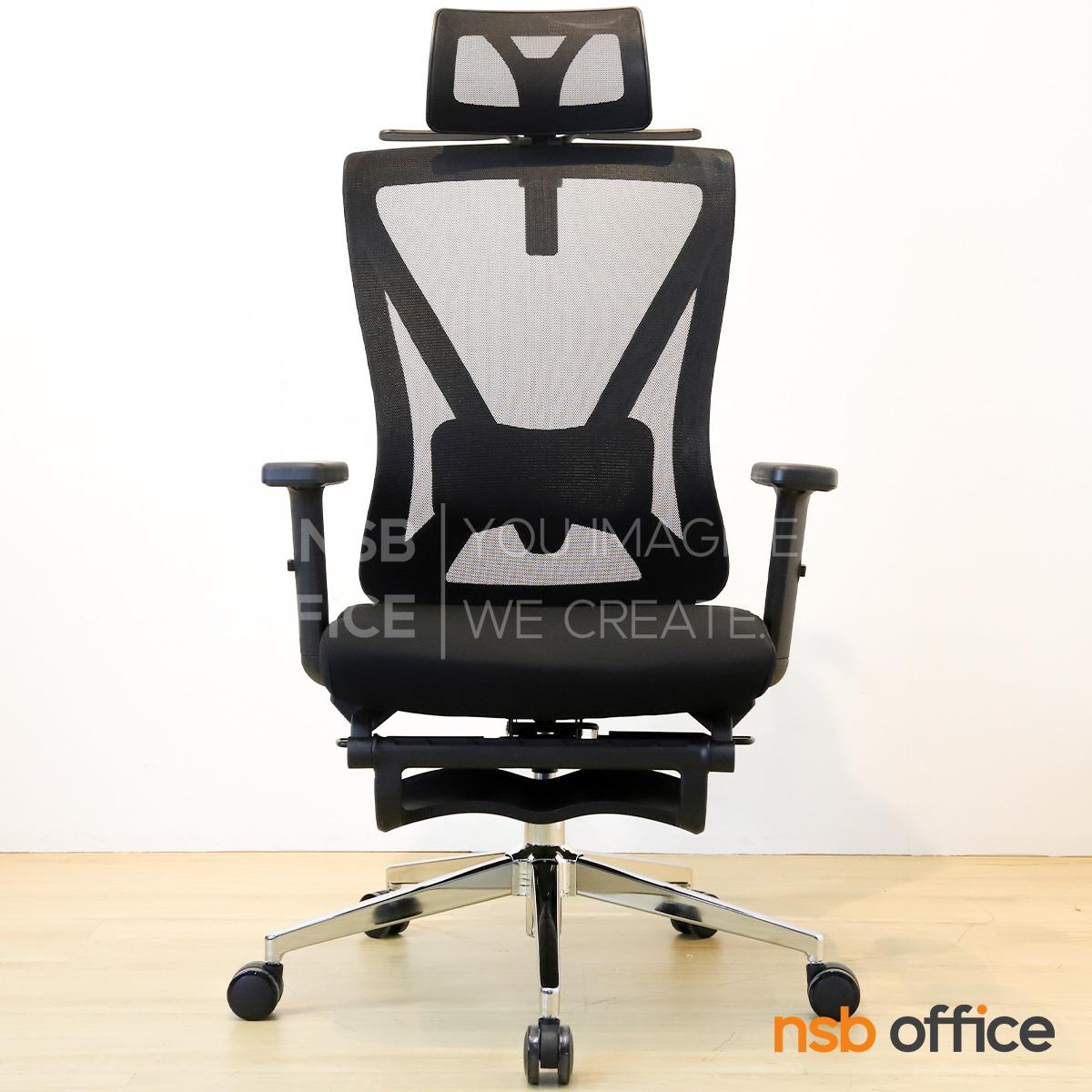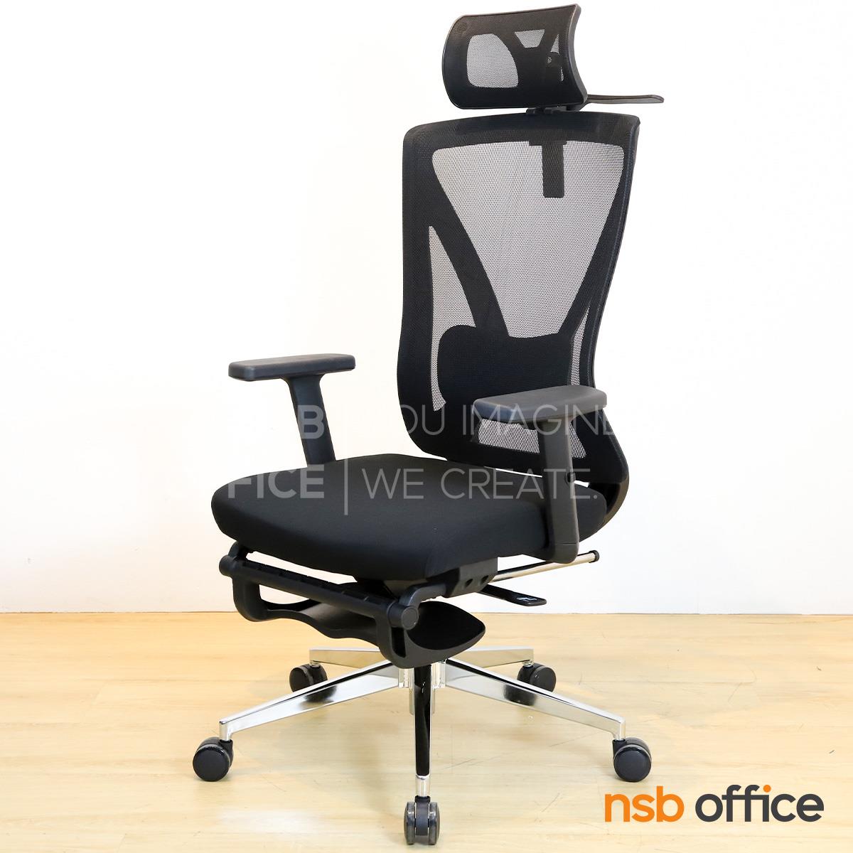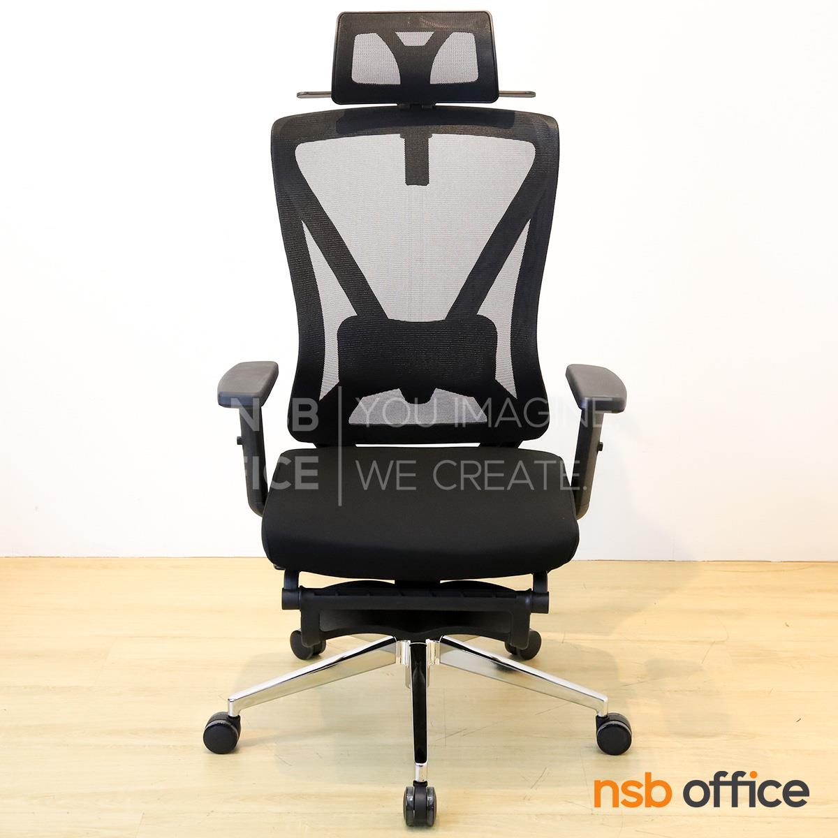 : เก้าอี้ผู้บริหารหลังเน็ต มีที่วางพักเท้า รุ่น Nyros (ไนรอส) โช้คแก๊ส ก้อนโยก ขาเหล็กชุบโครเมียม