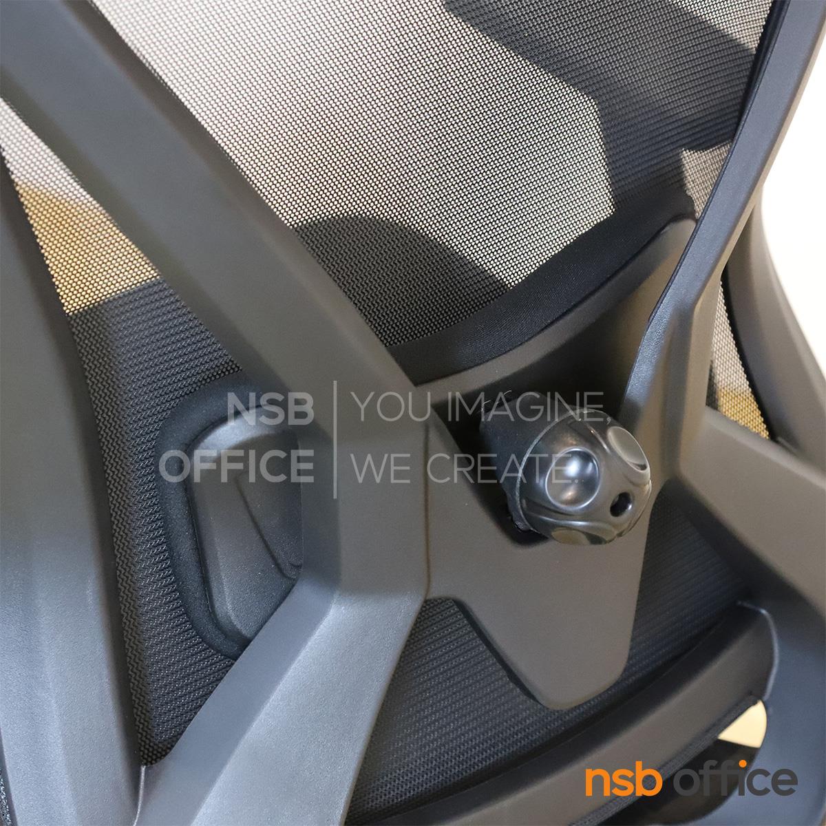 พนักพิงผลิตจากผ้าตาข่าย (Mesh) คุณสมบัติระบายอากาศได้ดี ลดความร้อนสะสมขณะใช้งาน พร้อมโครงสร้างรองรับแผ่นหลังเพื่อความสบายและรองรับสรีระในการนั่งทำงานระยะยาว