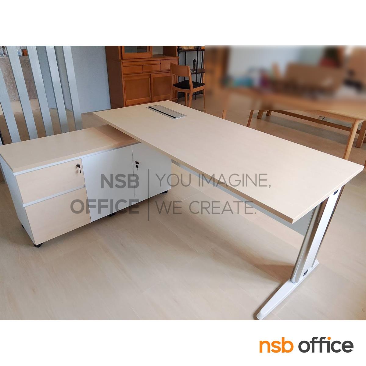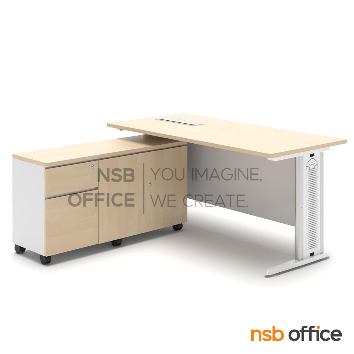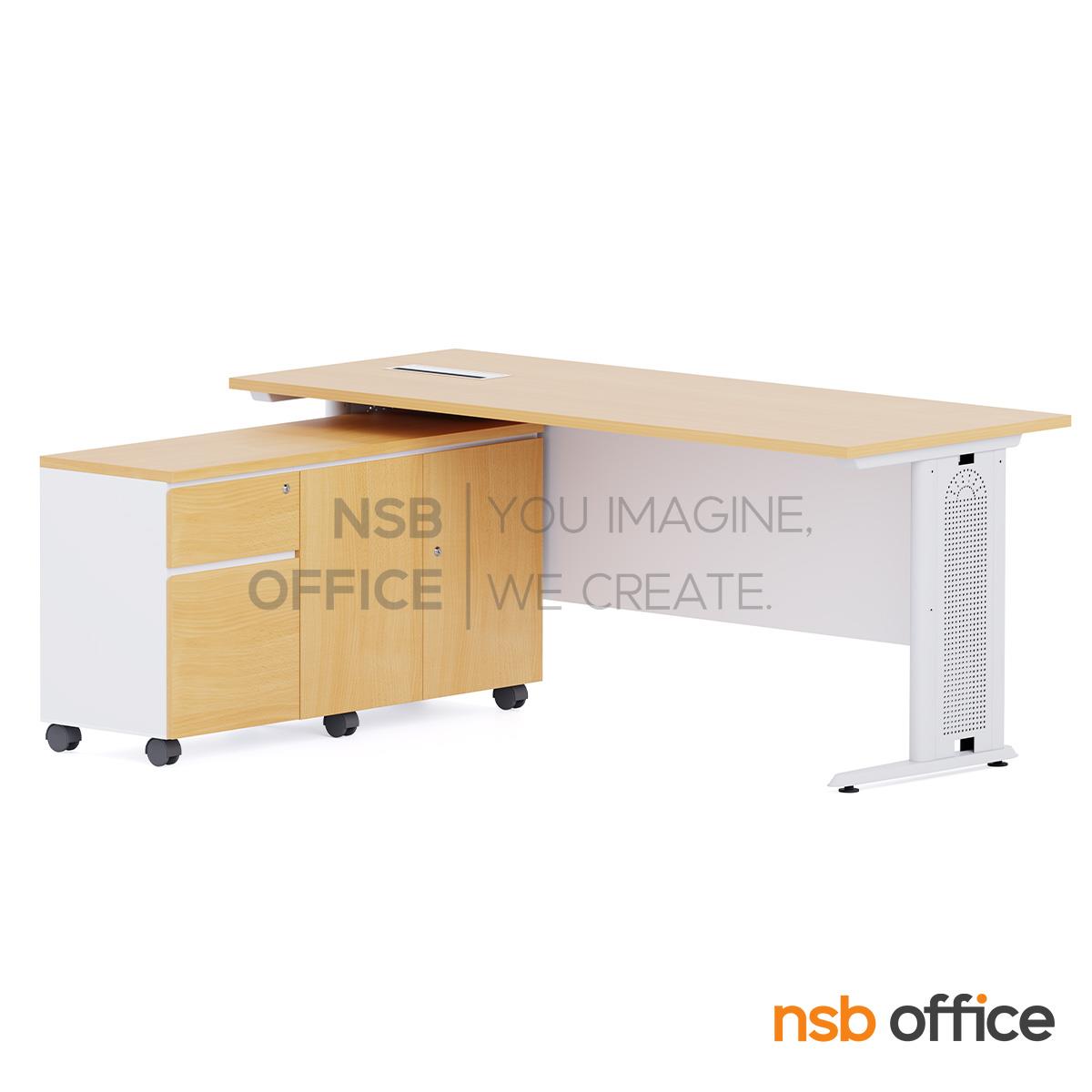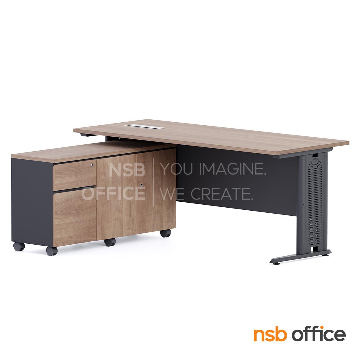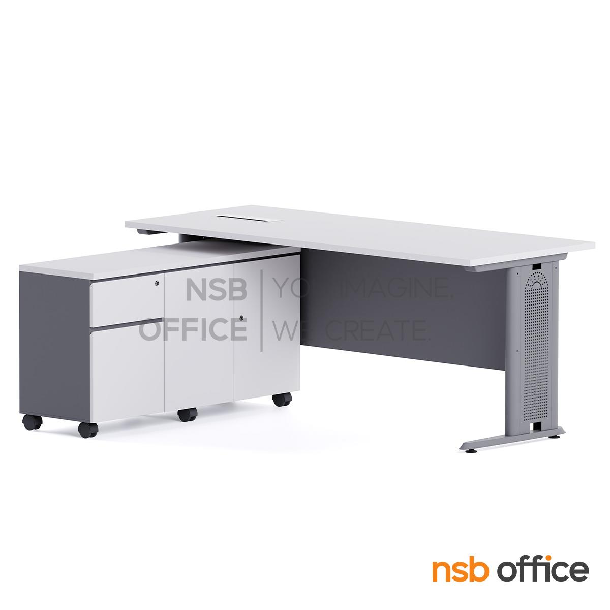 A28A006: โต๊ะทำงานผู้บริหาร รุ่น Draxen (แดร็กเซน) ขนาด 150W ,160W และ 180W cm. ขาเหล็ก พร้อมตู้ข้างล้อเลื่อน