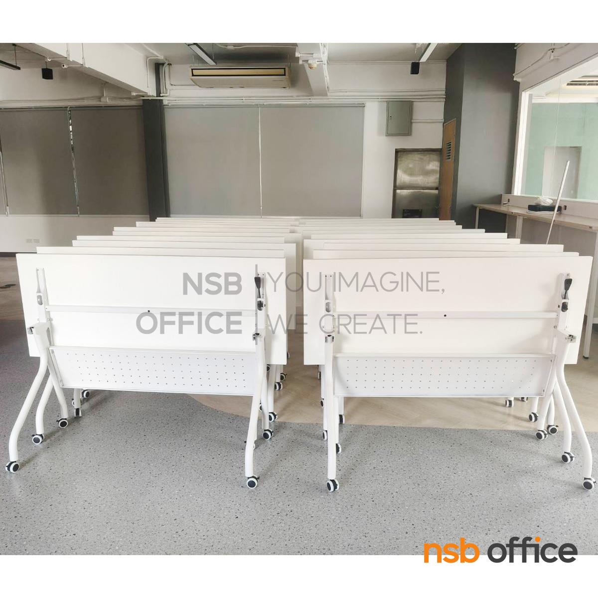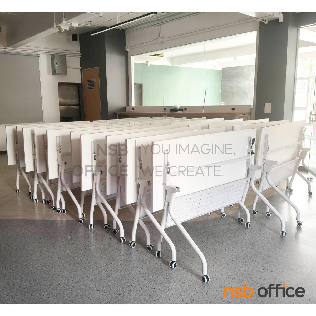 A20A046: โต๊ะประชุมพับเก็บได้ล้อเลื่อน (สีขาว) รุ่น Snipsy (สนิปซี่) ขนาด 120W ,150W และ 180W cm. โครงขาเหล็กสีขาว บังตาเหล็ก ล้อล็อกได้