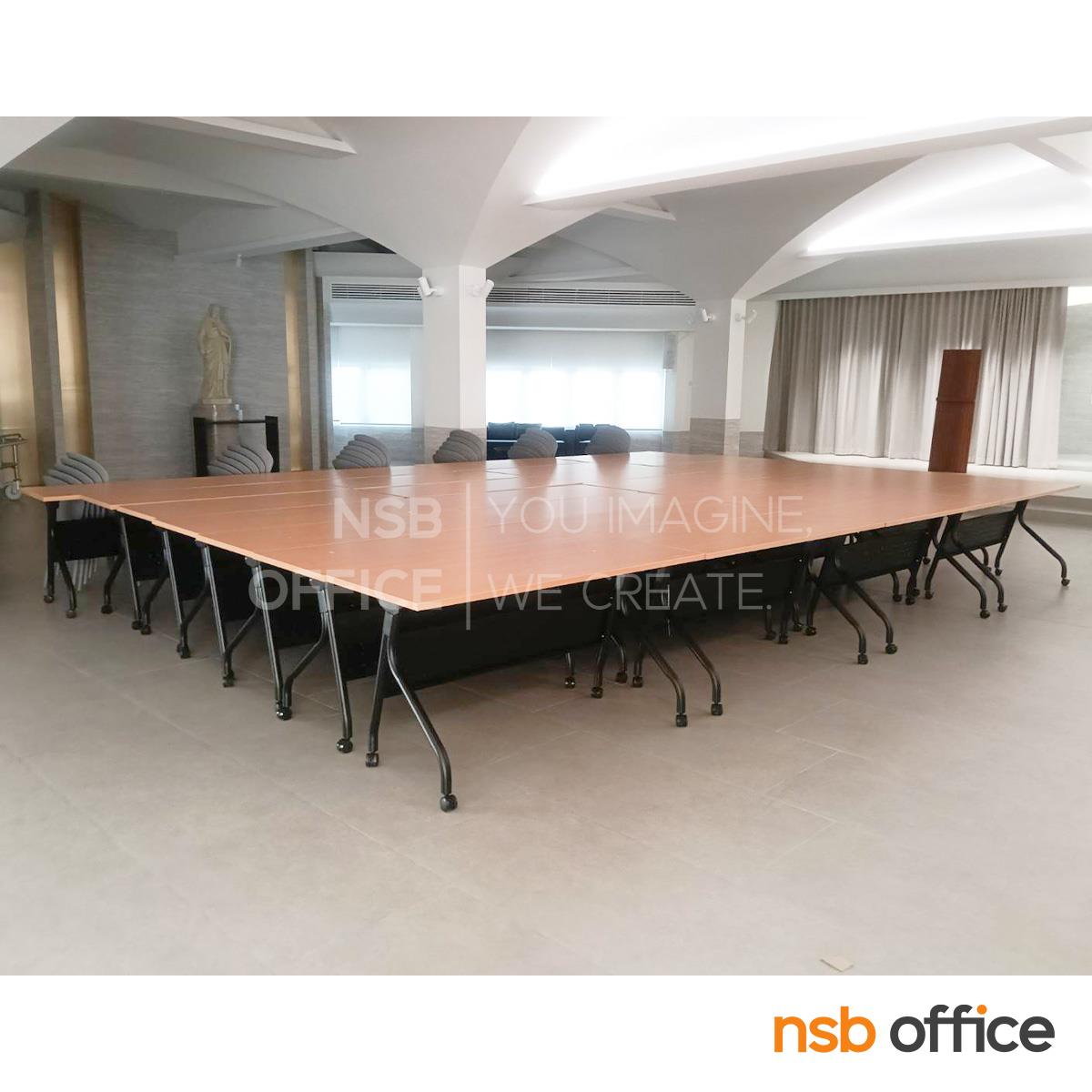 A20A047: โต๊ะประชุมพับเก็บได้ล้อเลื่อน (สีดำ) รุ่น Snipsy II (สนิปซี่ 2) ขนาด 120W ,150W และ 180W cm. โครงขาเหล็กสีดำ บังตาเหล็ก ล้อล็อกได้