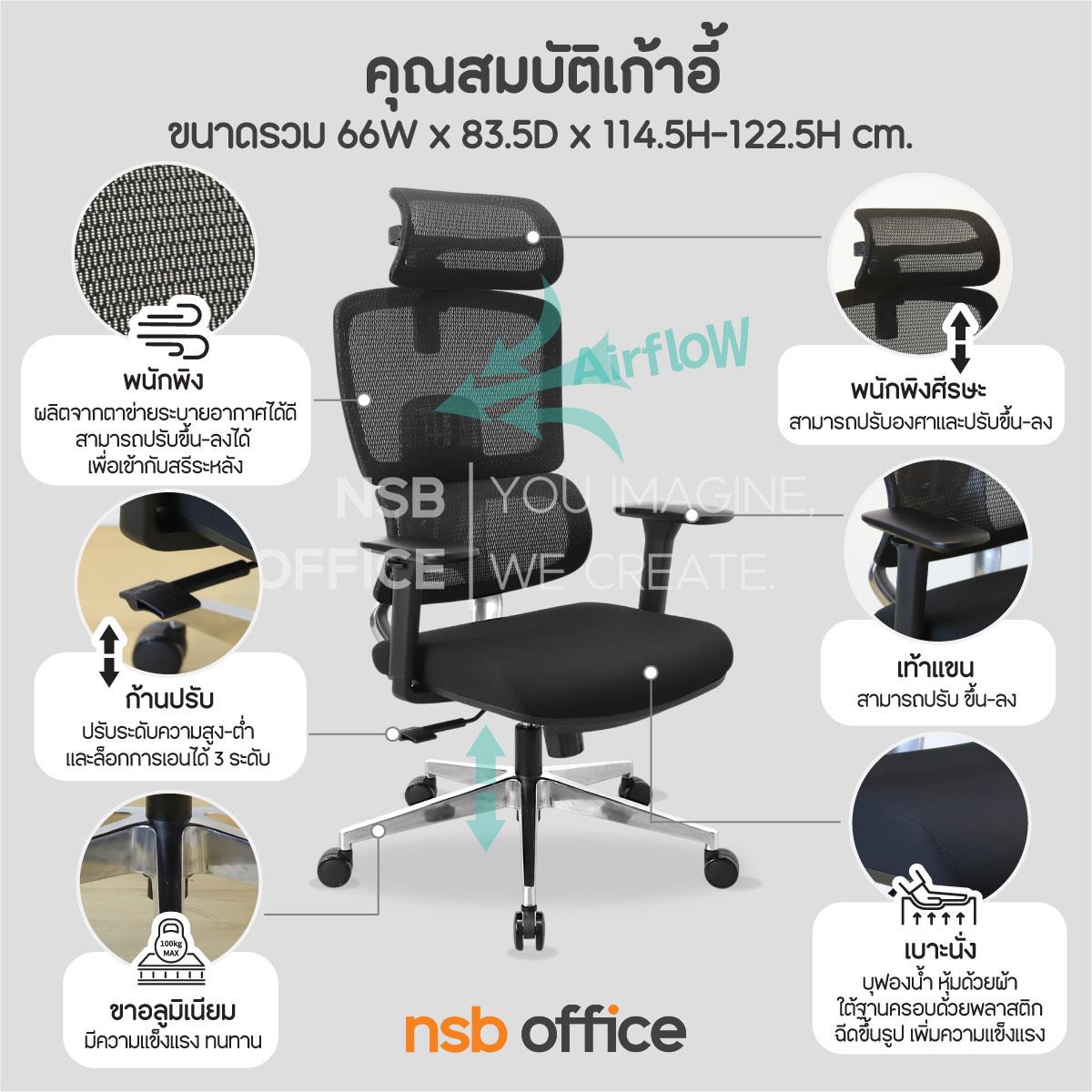 : เก้าอี้ผู้บริหารหลังเน็ต รุ่น Fennik (เฟนนิค) โช้คแก๊ส ก้อนโยก ขาอลูมิเนียม
