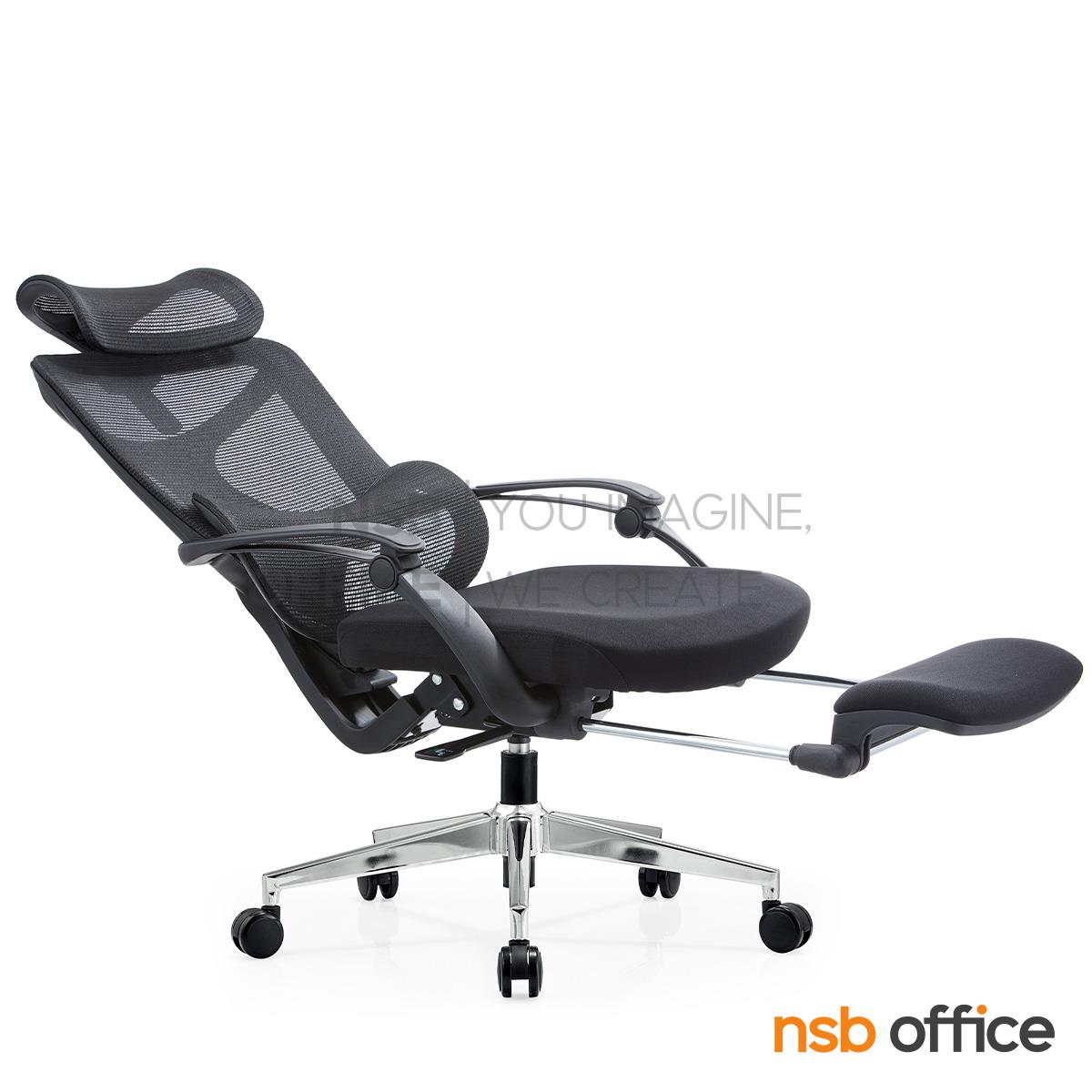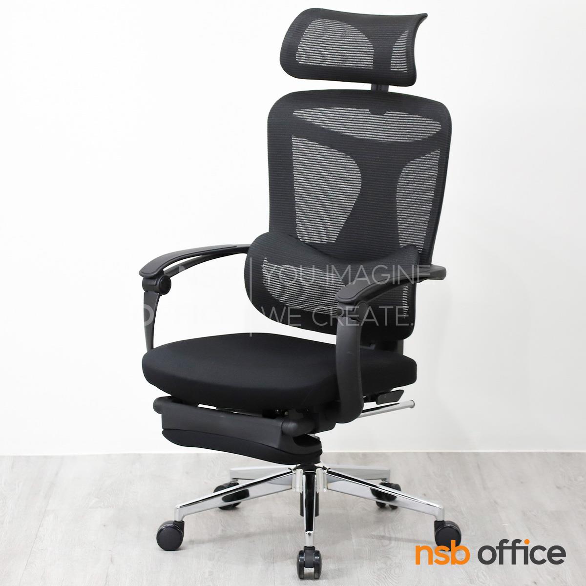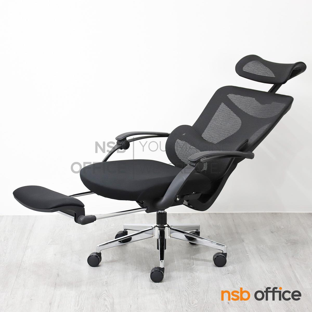 B28A209: เก้าอี้ผู้บริหารหลังเน็ต รุ่น Carmody (คาร์โมดี) ขาเหล็กชุบโครเมียม มีที่วางพักเท้าเก็บได้