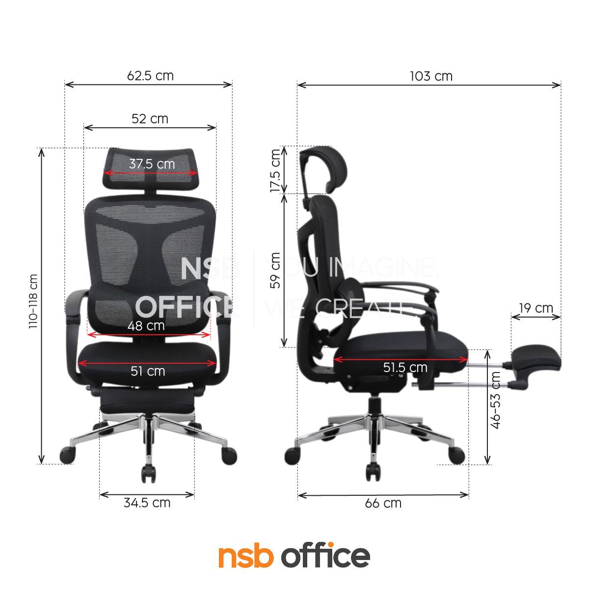 : เก้าอี้ผู้บริหารหลังเน็ต รุ่น Carmody (คาร์โมดี) ขาเหล็กชุบโครเมียม มีที่วางพักเท้าเก็บได้