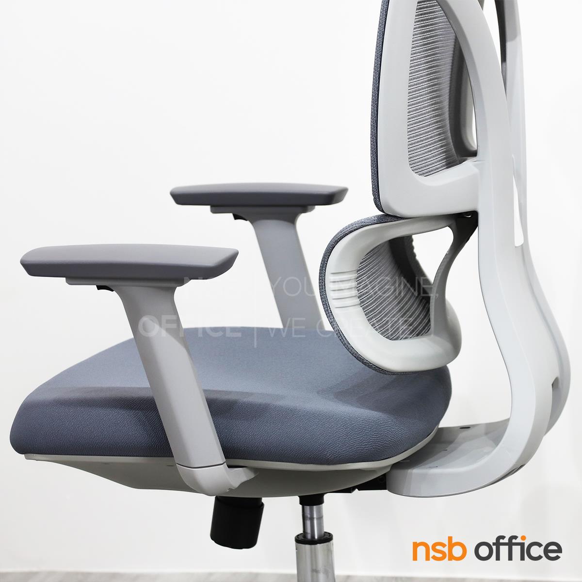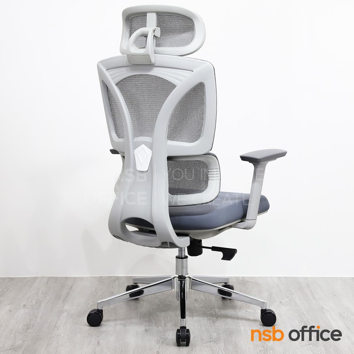 พนักพิงผลิตจากผ้าตาข่าย (Mesh) คุณสมบัติระบายอากาศได้ดี ลดความร้อนสะสมขณะใช้งาน พร้อมโครงสร้างรองรับแผ่นหลังเพื่อความสบายและรองรับสรีระในการนั่งทำงานระยะยาว