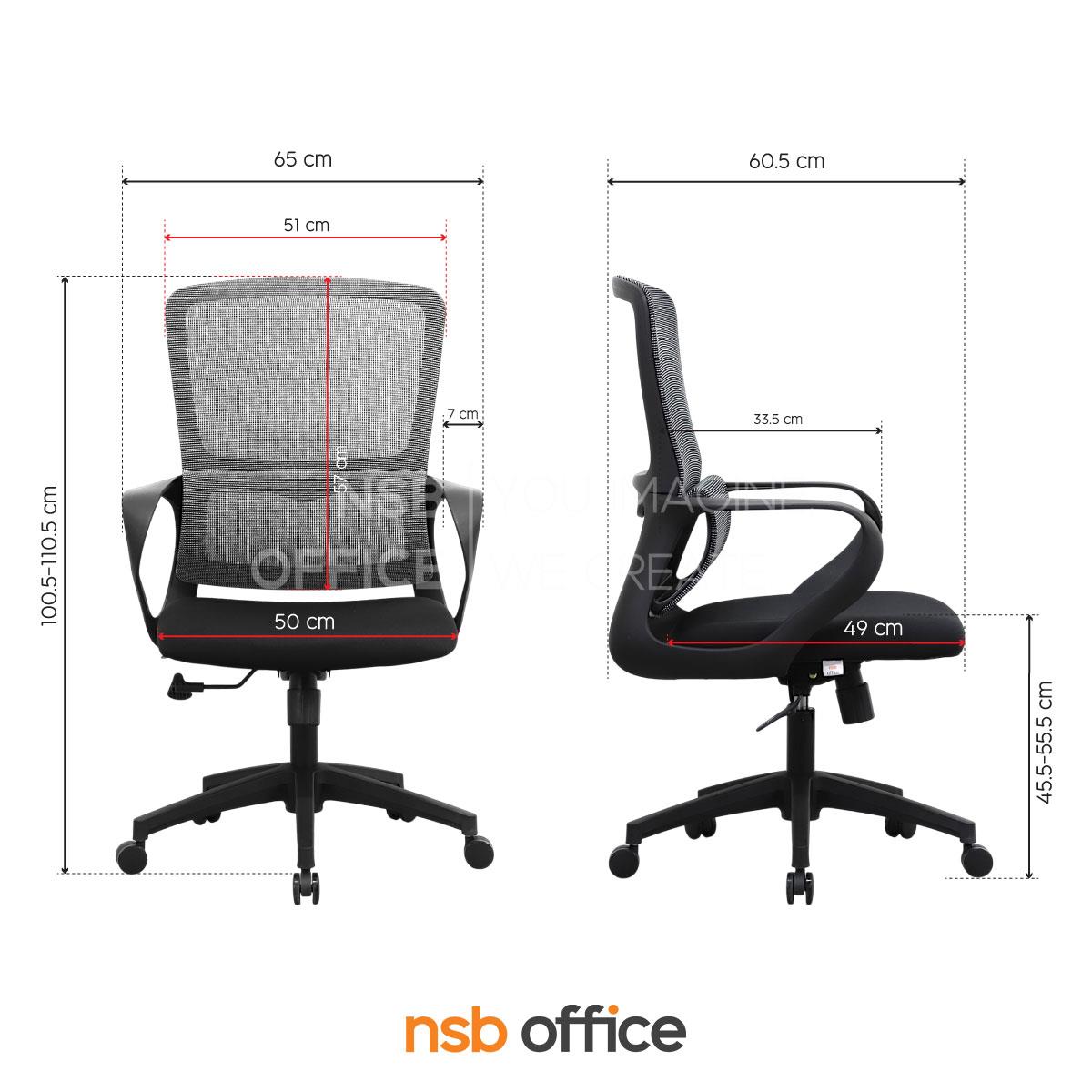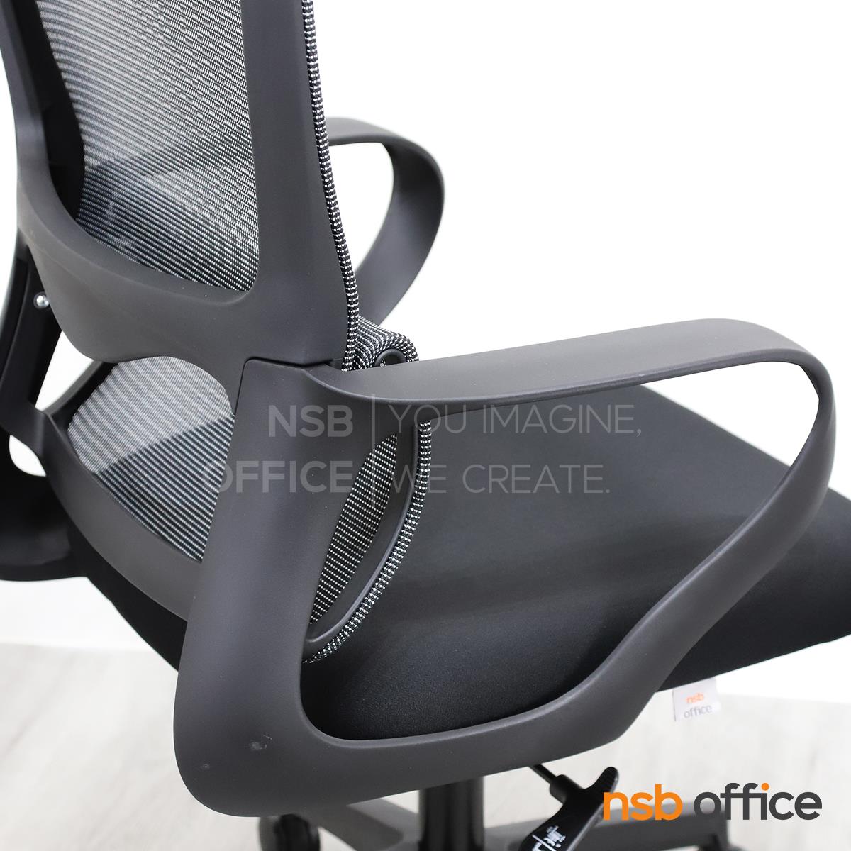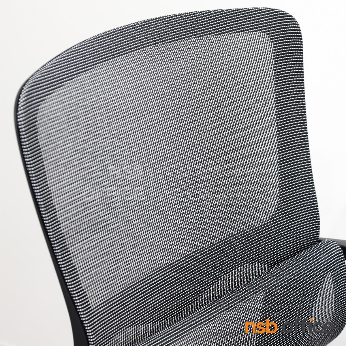 พนักพิงผลิตจากผ้าตาข่าย (Mesh) คุณสมบัติระบายอากาศได้ดี ลดความร้อนสะสมขณะใช้งาน พร้อมโครงสร้างรองรับแผ่นหลังเพื่อความสบายและรองรับสรีระในการนั่งทำงานระยะยาว