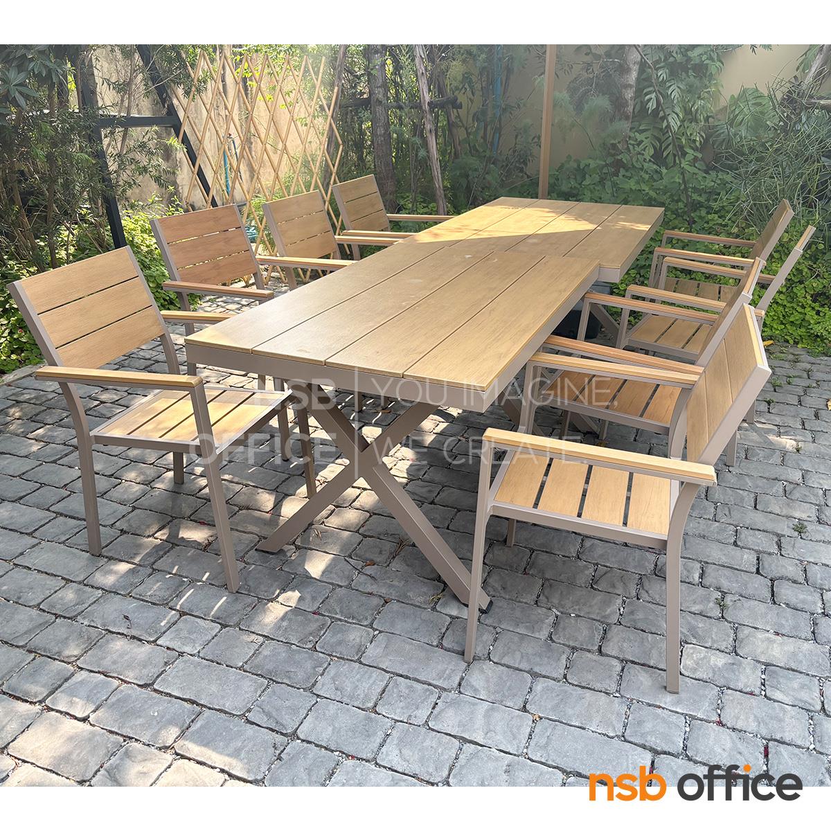A14A351: โต๊ะไม้พลาสวูด รุ่น Duchess (ดัชเชส) ขนาด 130W cm. โครงขาอลูมิเนียม