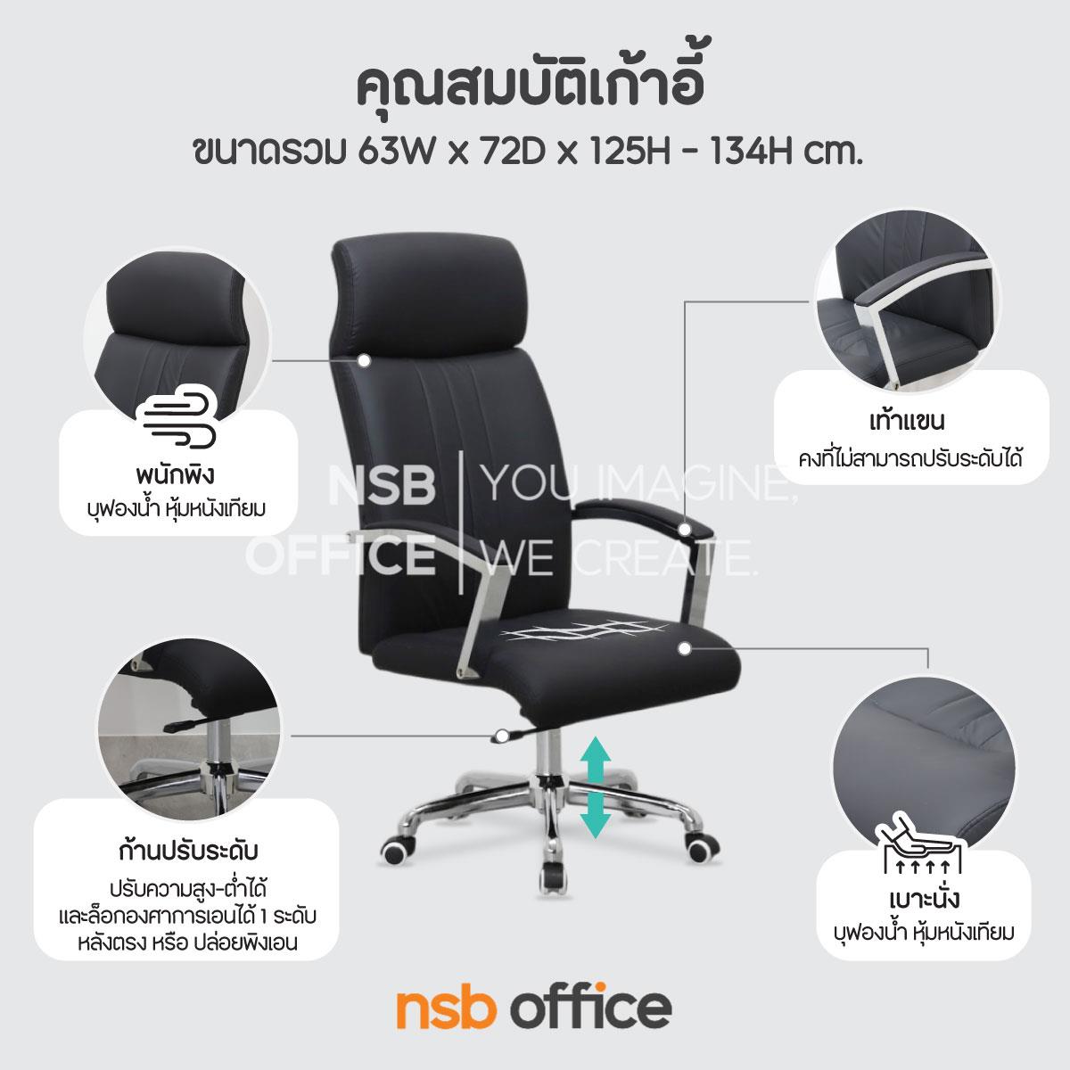 : เก้าอี้ผู้บริหารหนังเทียม รุ่น Roxelle (ร็อกเซลล์) โช้คแก๊ส ก้อนโยก ขาเหล็กชุบโครเมียม