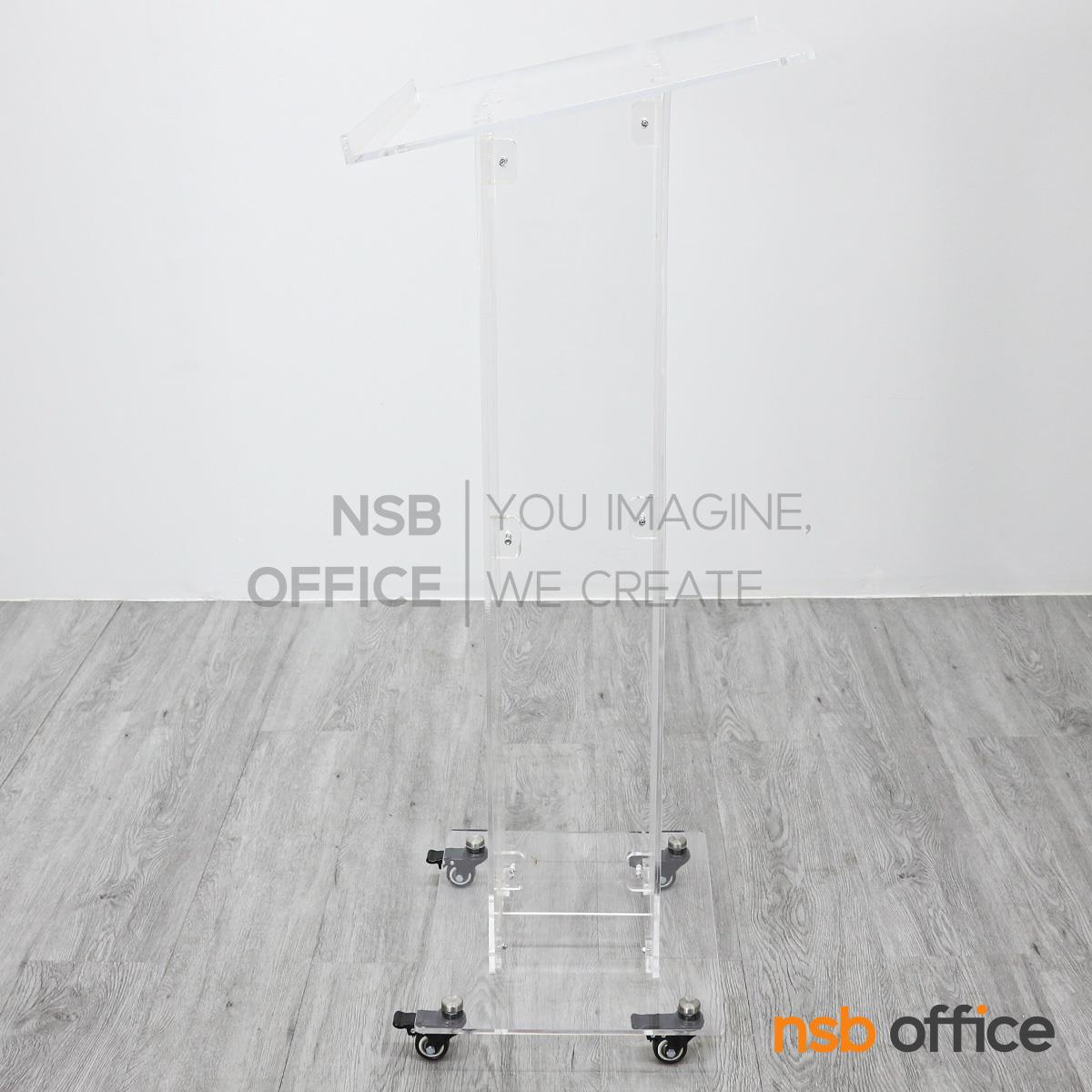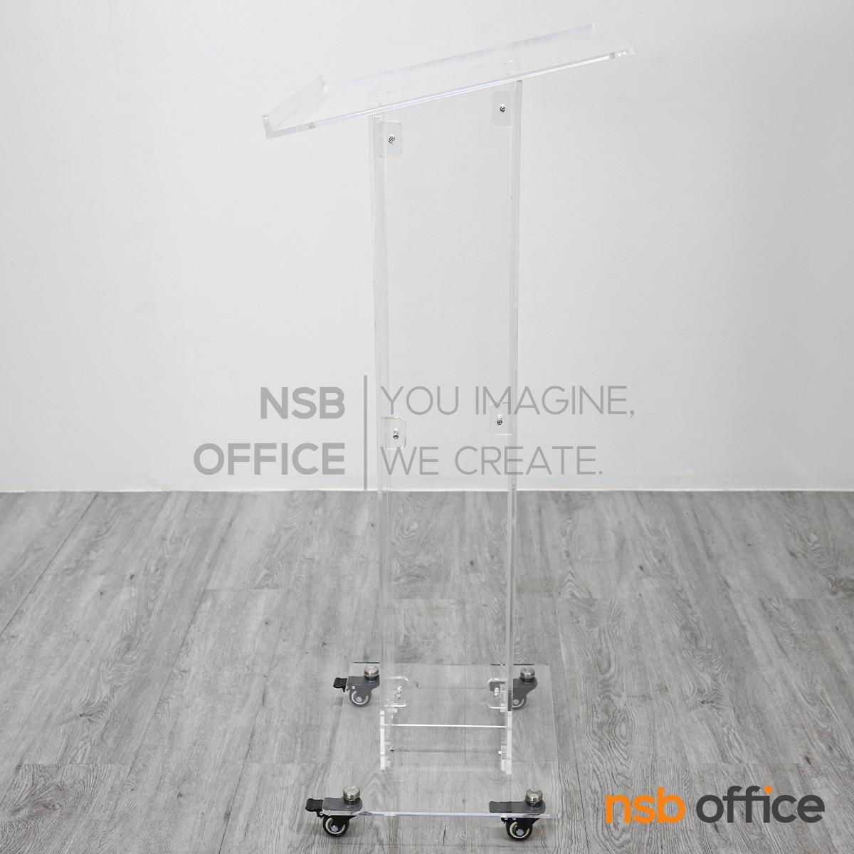 G17A047: โพเดียมอะคริลิคใสล้วน รุ่น Vinca (วินก้า) ล้อเลื่อน สามารถล็อกให้คงที่ได้