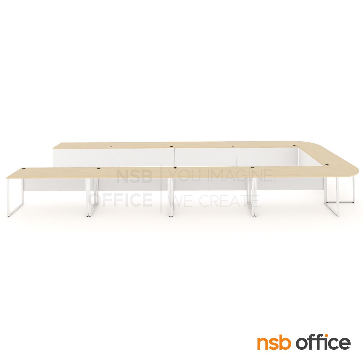 A05A295: โต๊ะประชุมตัวต่อรูปตัวยู 18 ที่นั่ง รุ่น Gravel (กราเวล) ขนาด 700W*280D cm.