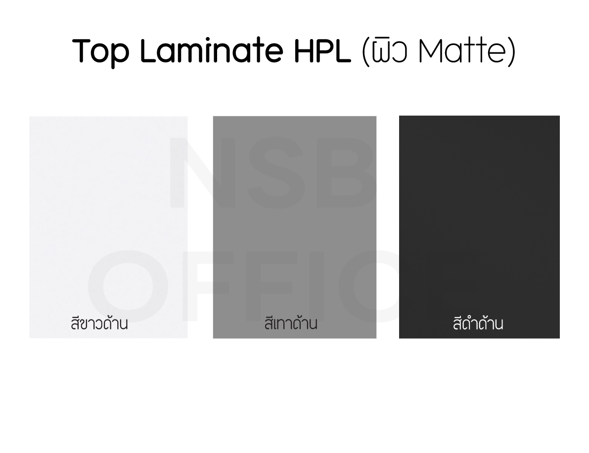 โครงสร้างหน้าท็อปผลิตจากไม้ HMR (High Moisture Resistance board) เคลือบด้วยลามิเนต HPL สีขาวล้วน
